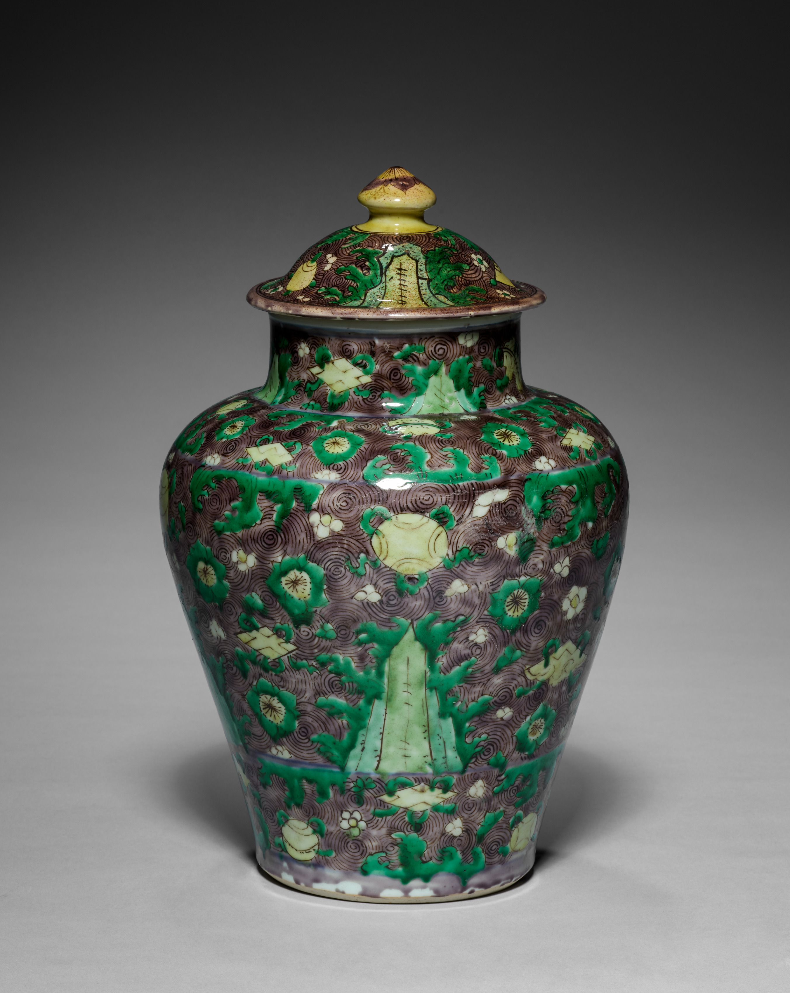 Covered Jar with Chrysanthemums, Peonies, and Plum