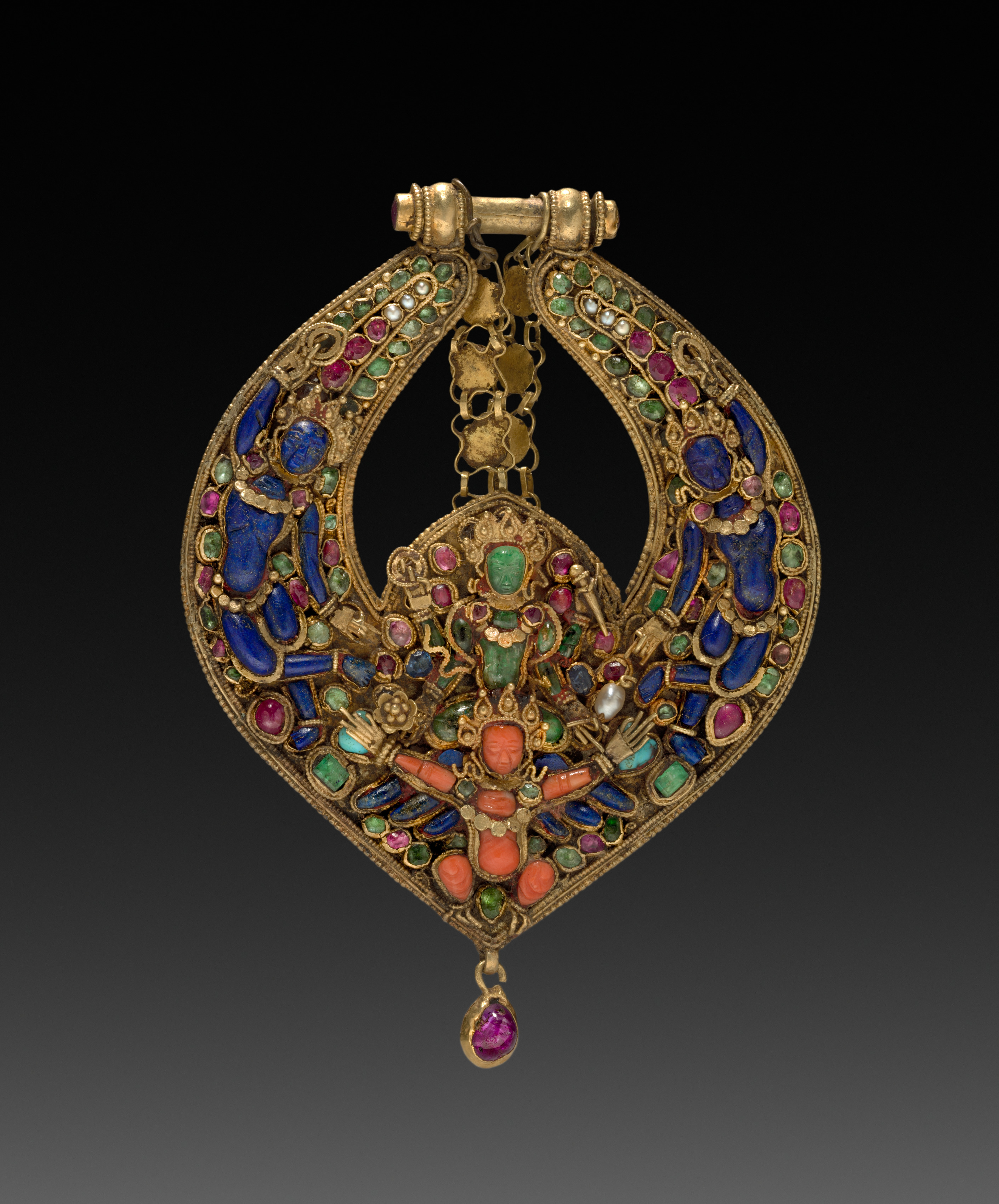 Pendant with Two-Armed Blue Deity on a Lotus with Nagas (serpent divinities)