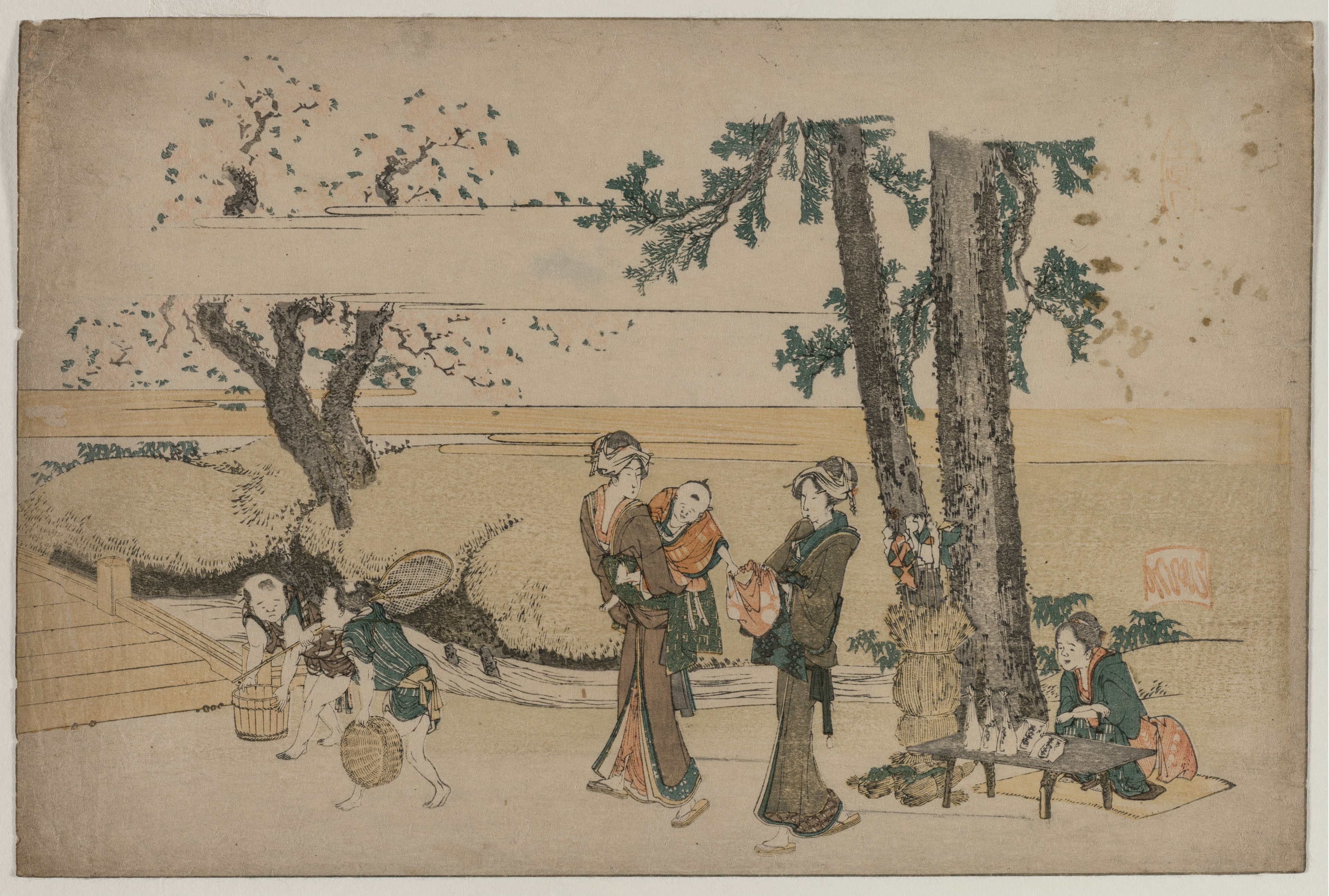 Women and Children Walking Along the Sumida River