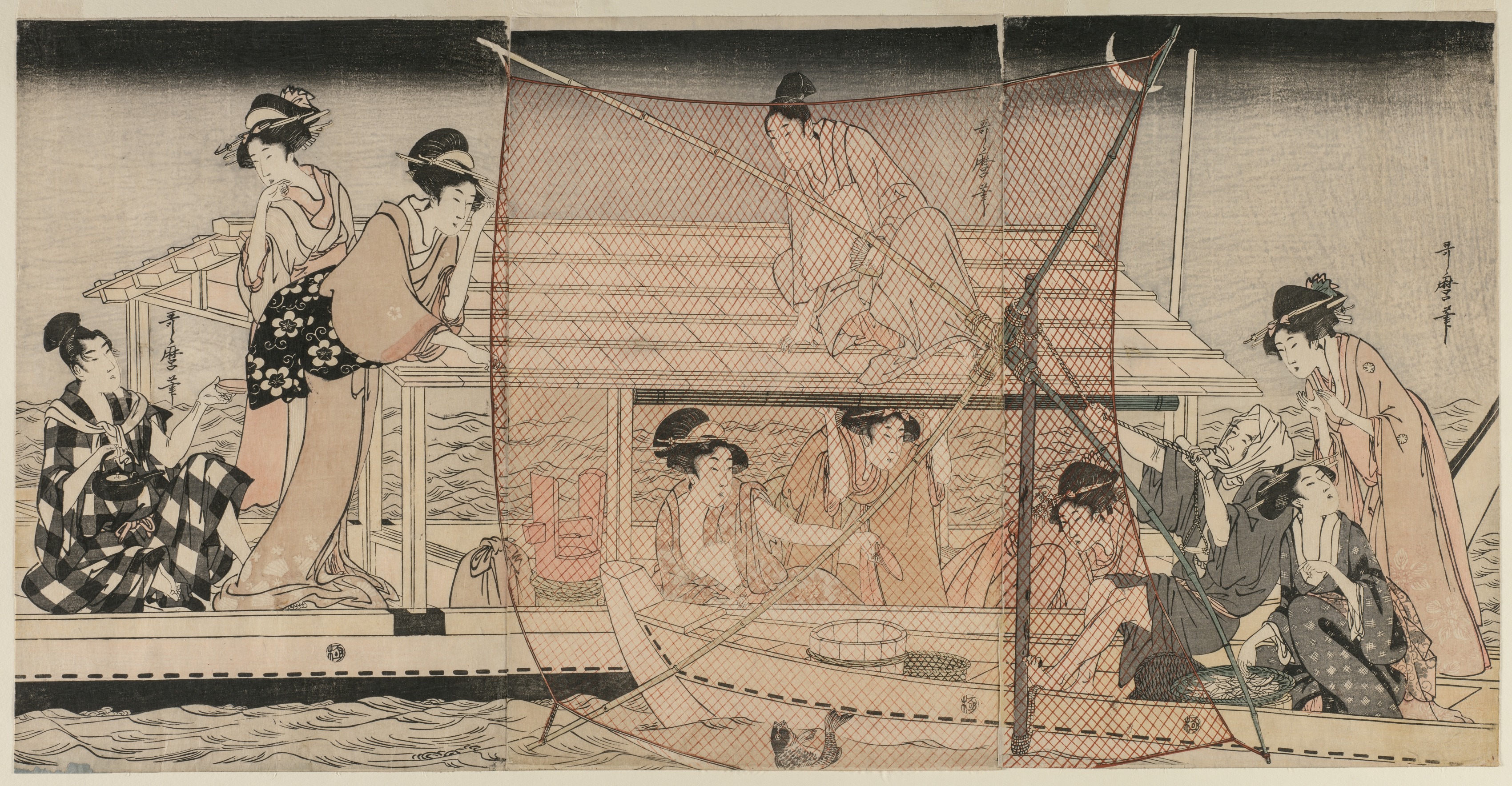 Girls Getting on Board a Boat, from the illustrated book Flowers of the Four Seasons