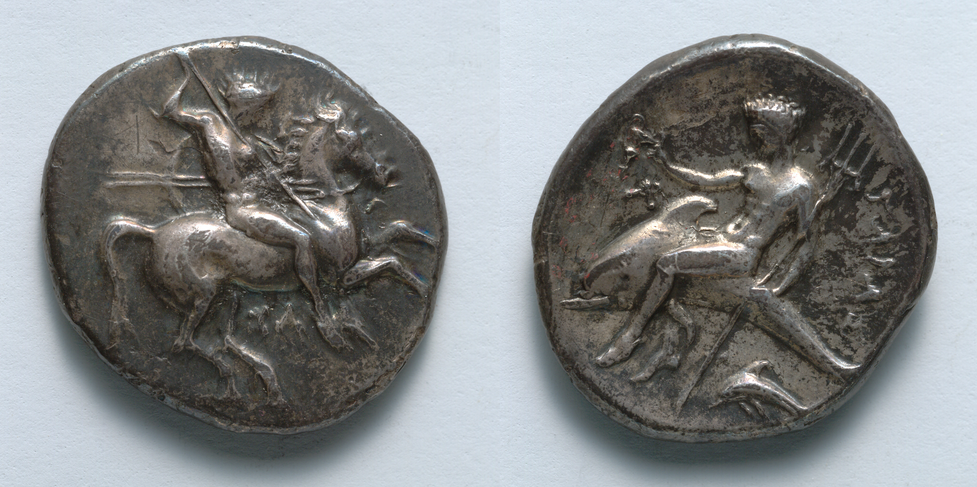 Stater: Nude Warrior on Horseback (obverse); Taras (reverse)