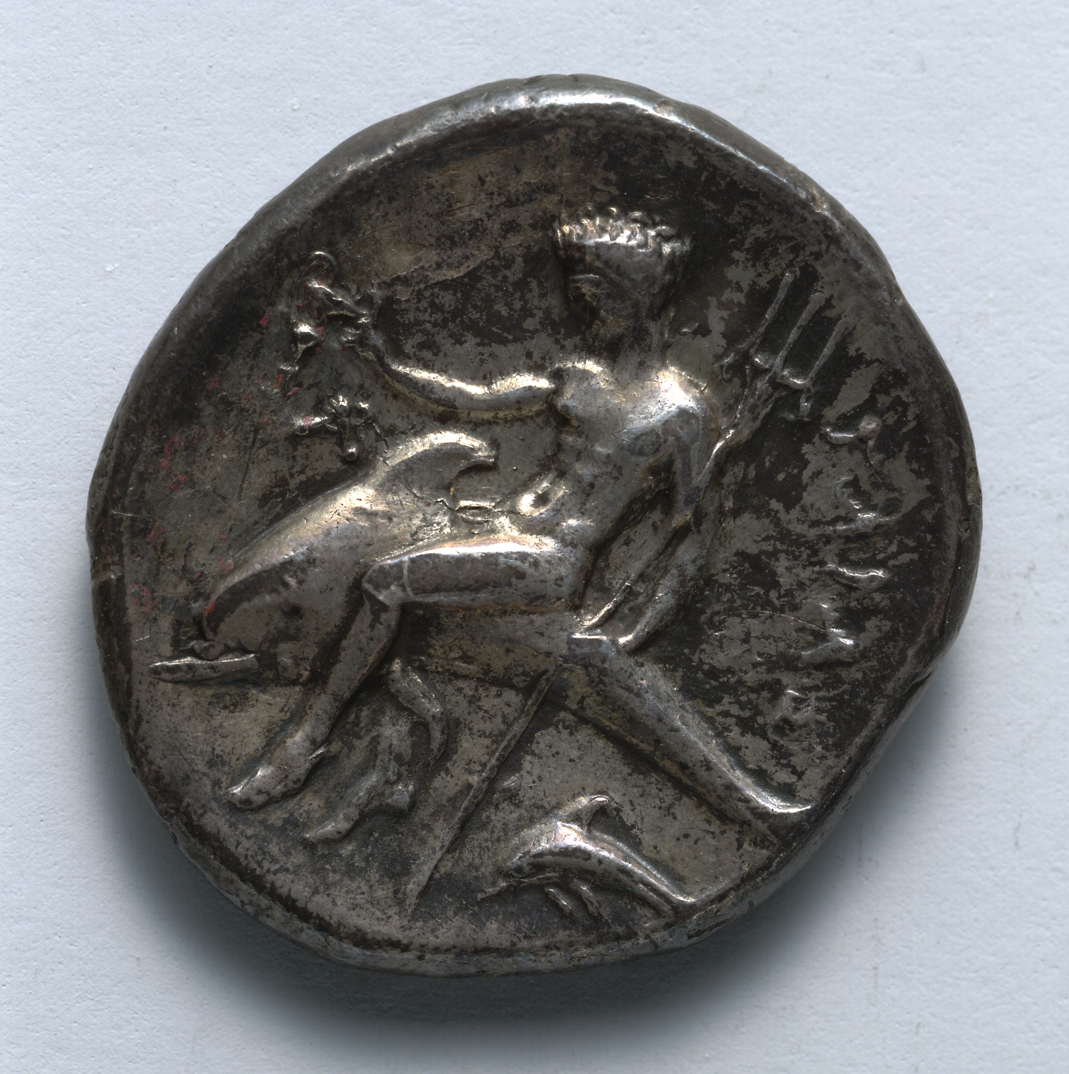Stater: Nude Warrior on Horseback (obverse); Taras (reverse)