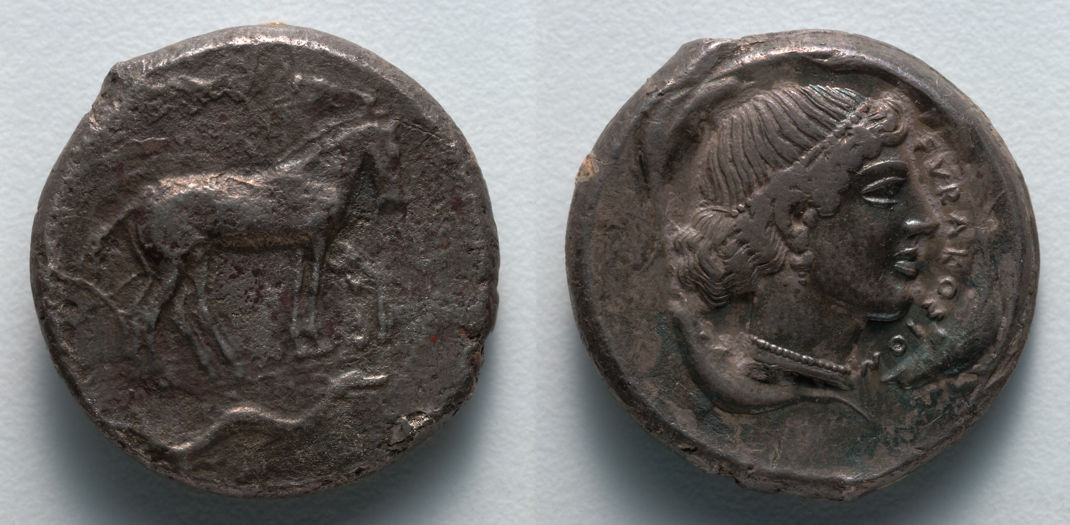 Tetradrachm: Head of Tanit-Persephone (obverse); Horse (reverse)