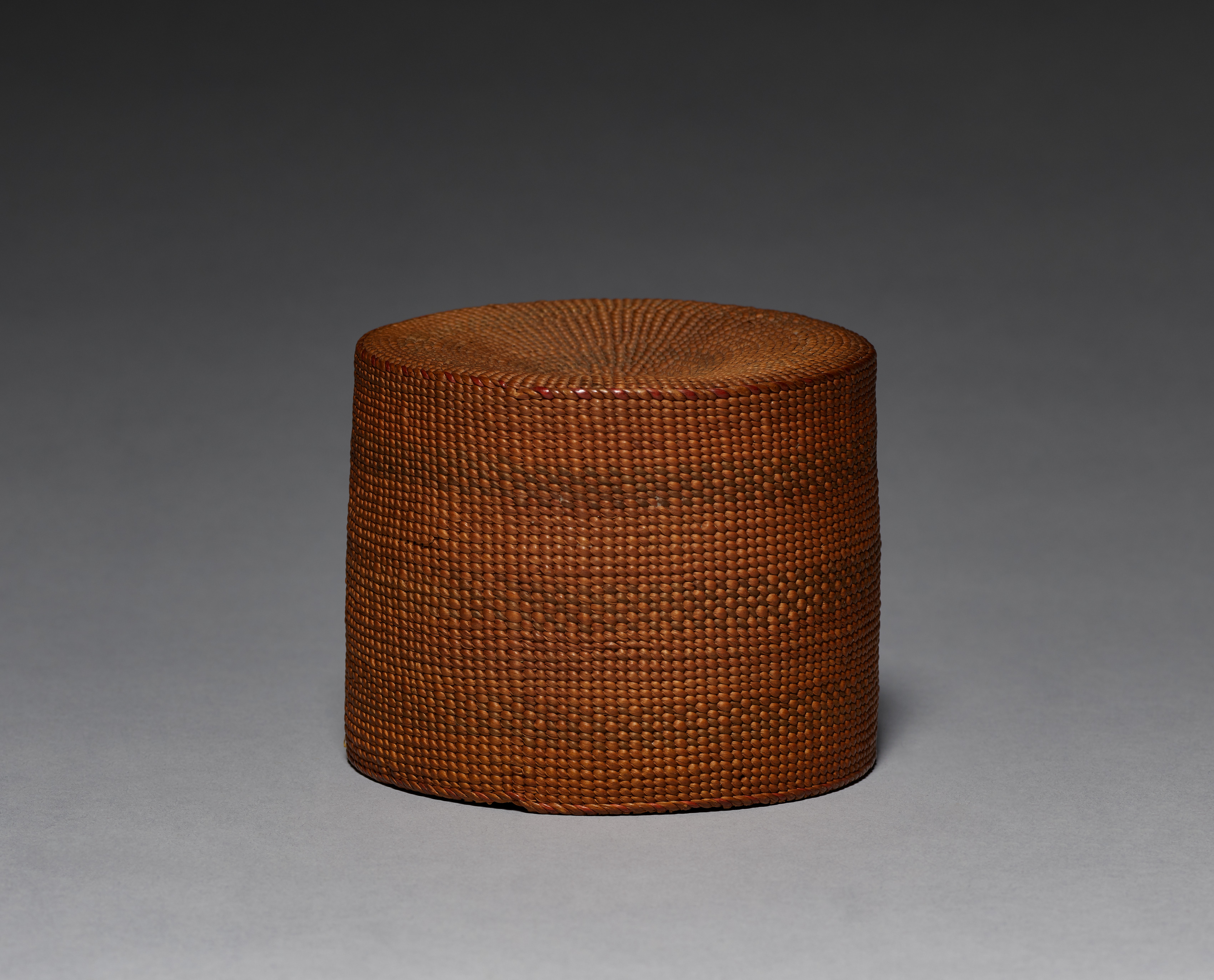Covered Twined Cylindrical Basket