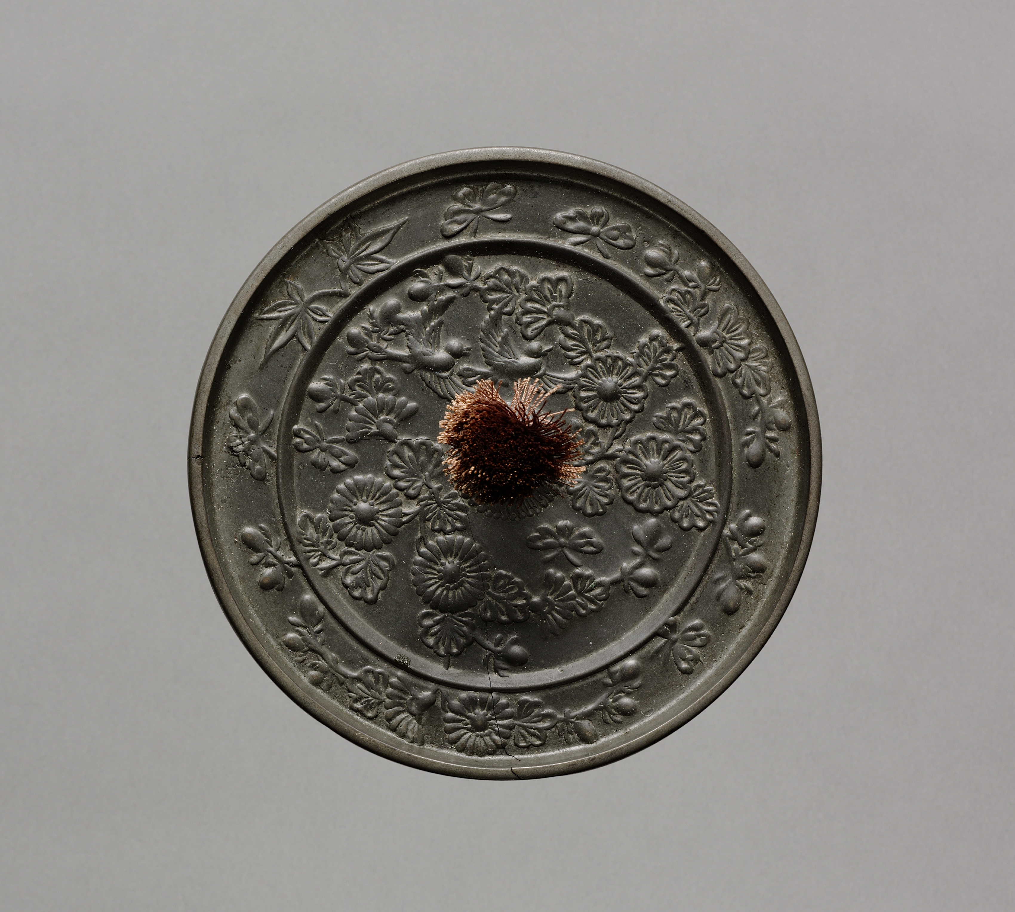 Mirror with Pair of Birds and Chrysanthemum Pattern