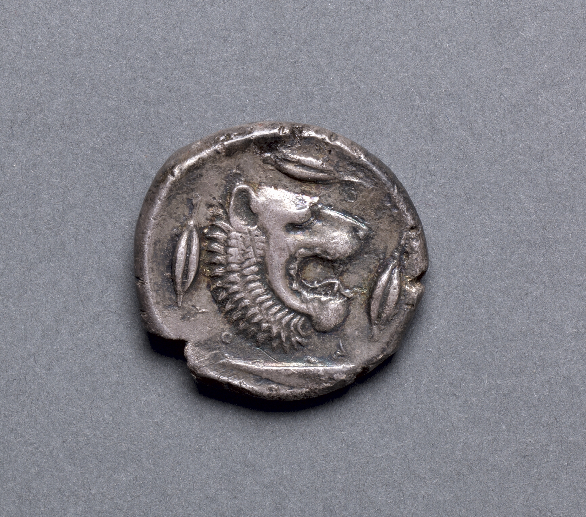 Tetradrachm: Head of Lion, Barley, Riverfish (reverse)