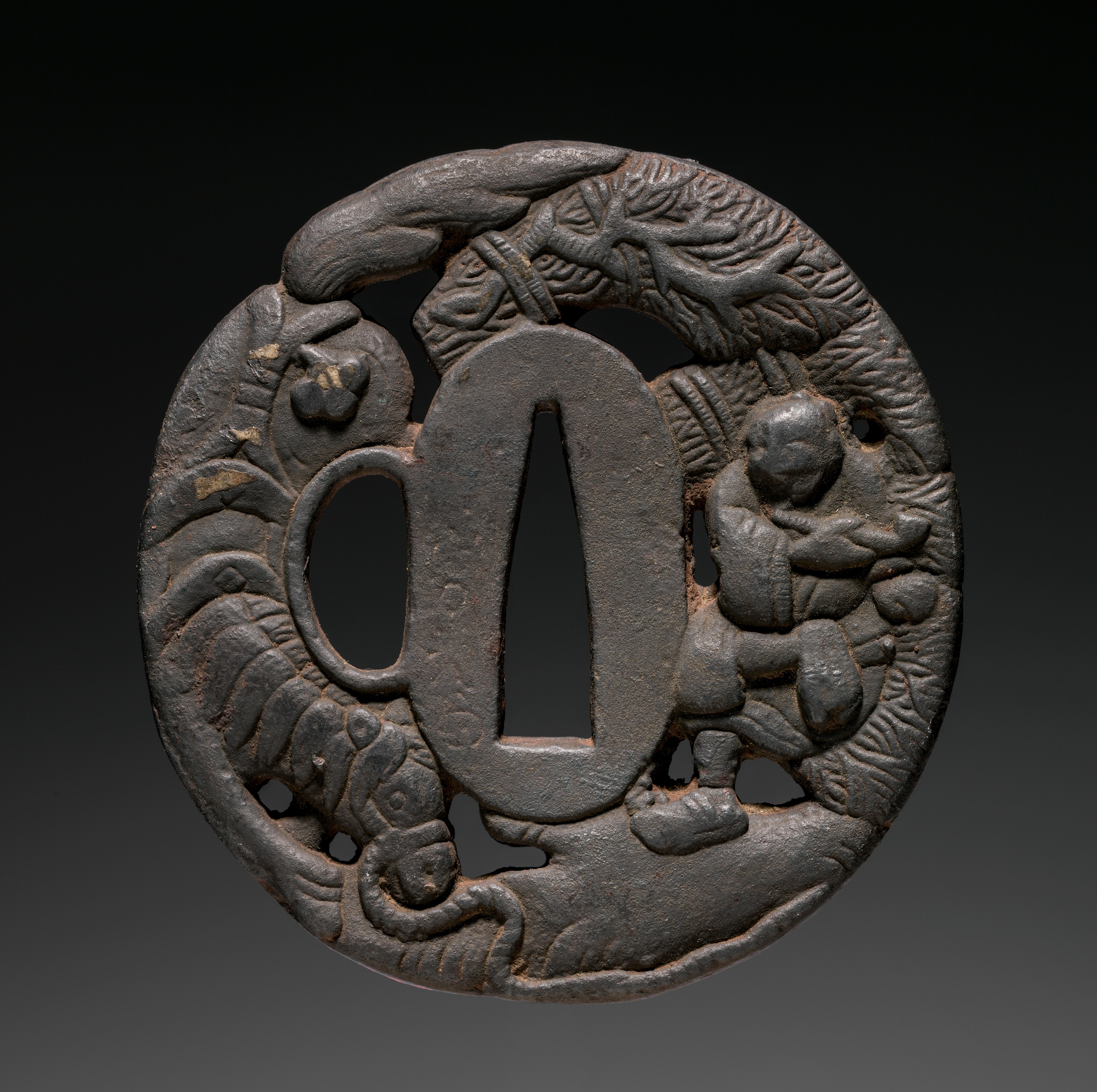 Sword Guard (Tsuba) with Dragon, Lion, and Sea Monster