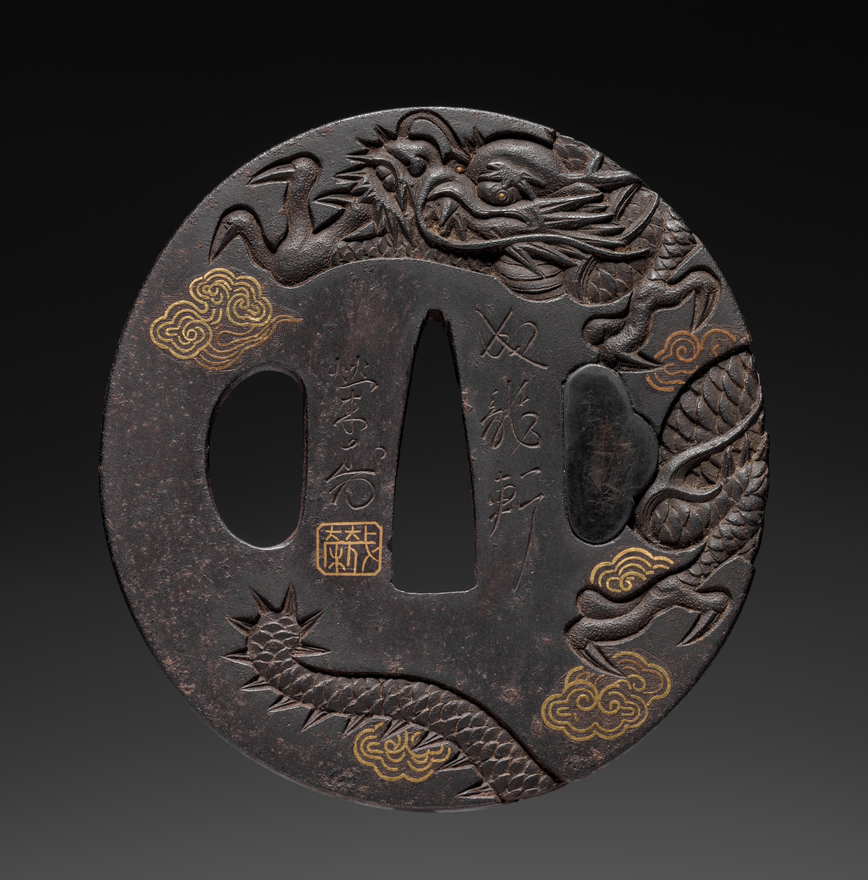Sword Guard (<i>Tsuba</i>) Depicting Dragon Between Waves (波龍図鐔)