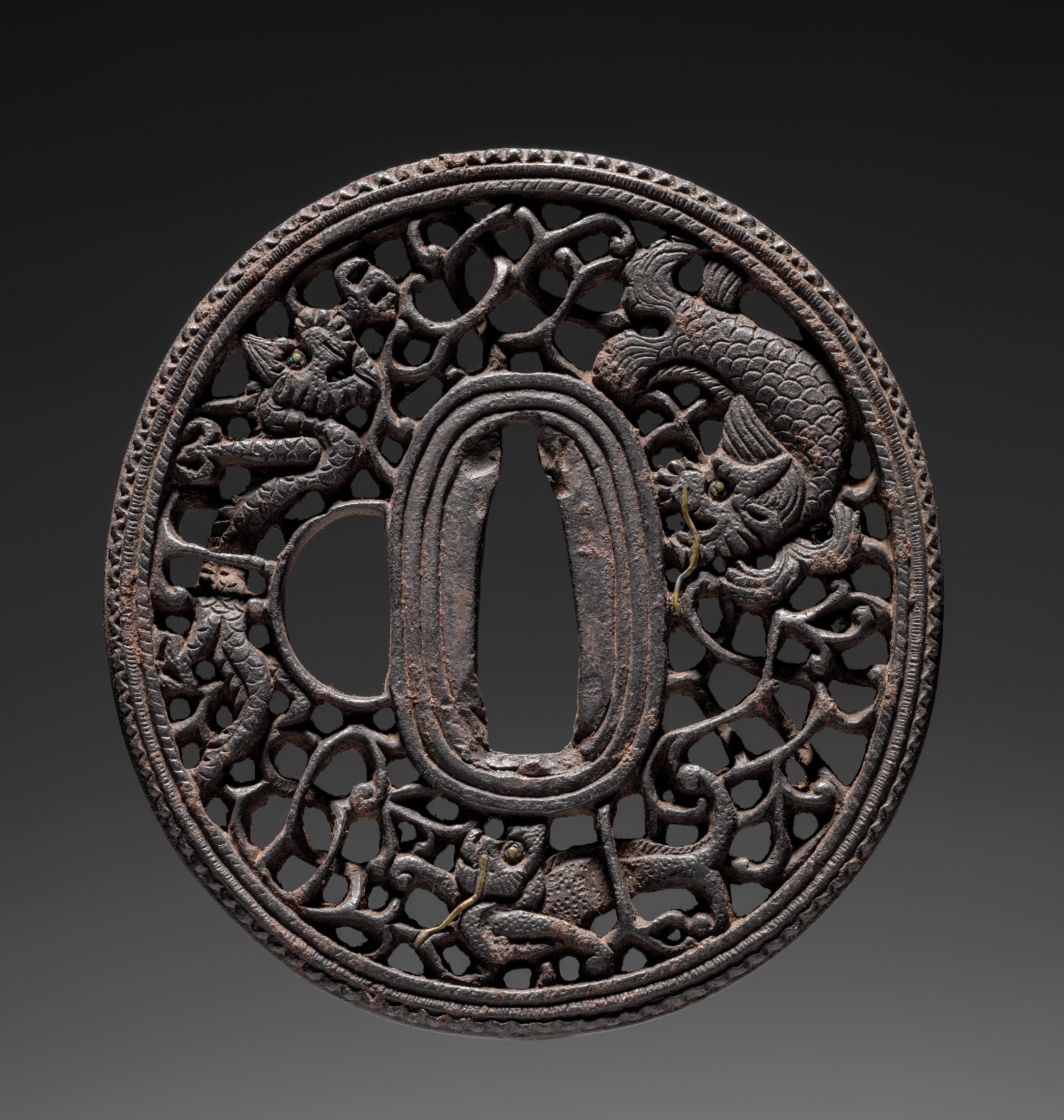 Sword Guard (Tsuba) with Dragon, Lion, and Sea Monster