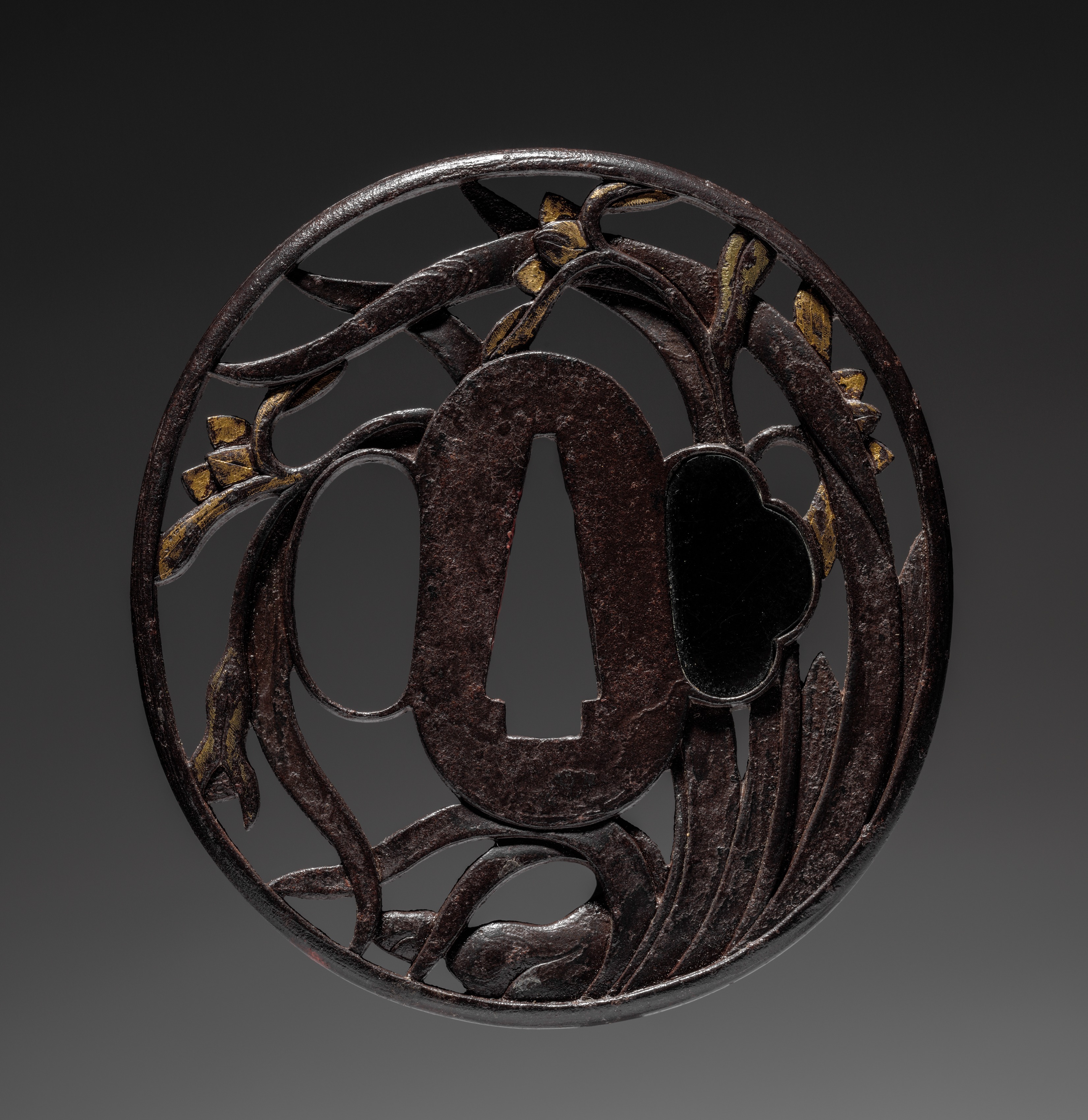Sword Guard (Tsuba) with Plum and Waves