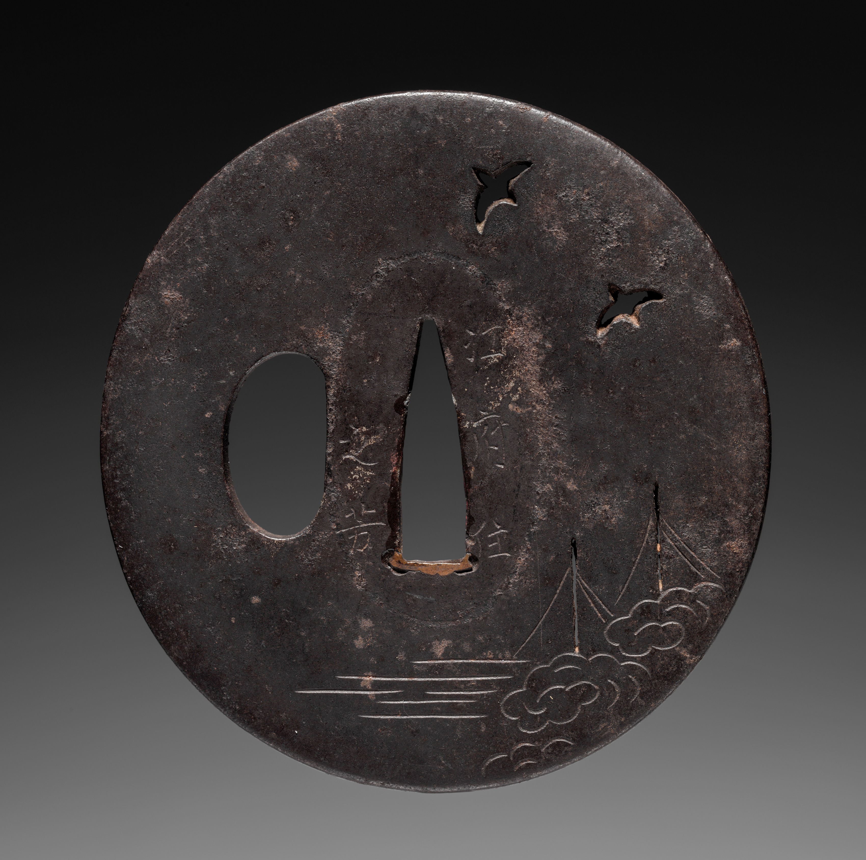Sword Guard (Tsuba) with Birds and Sails