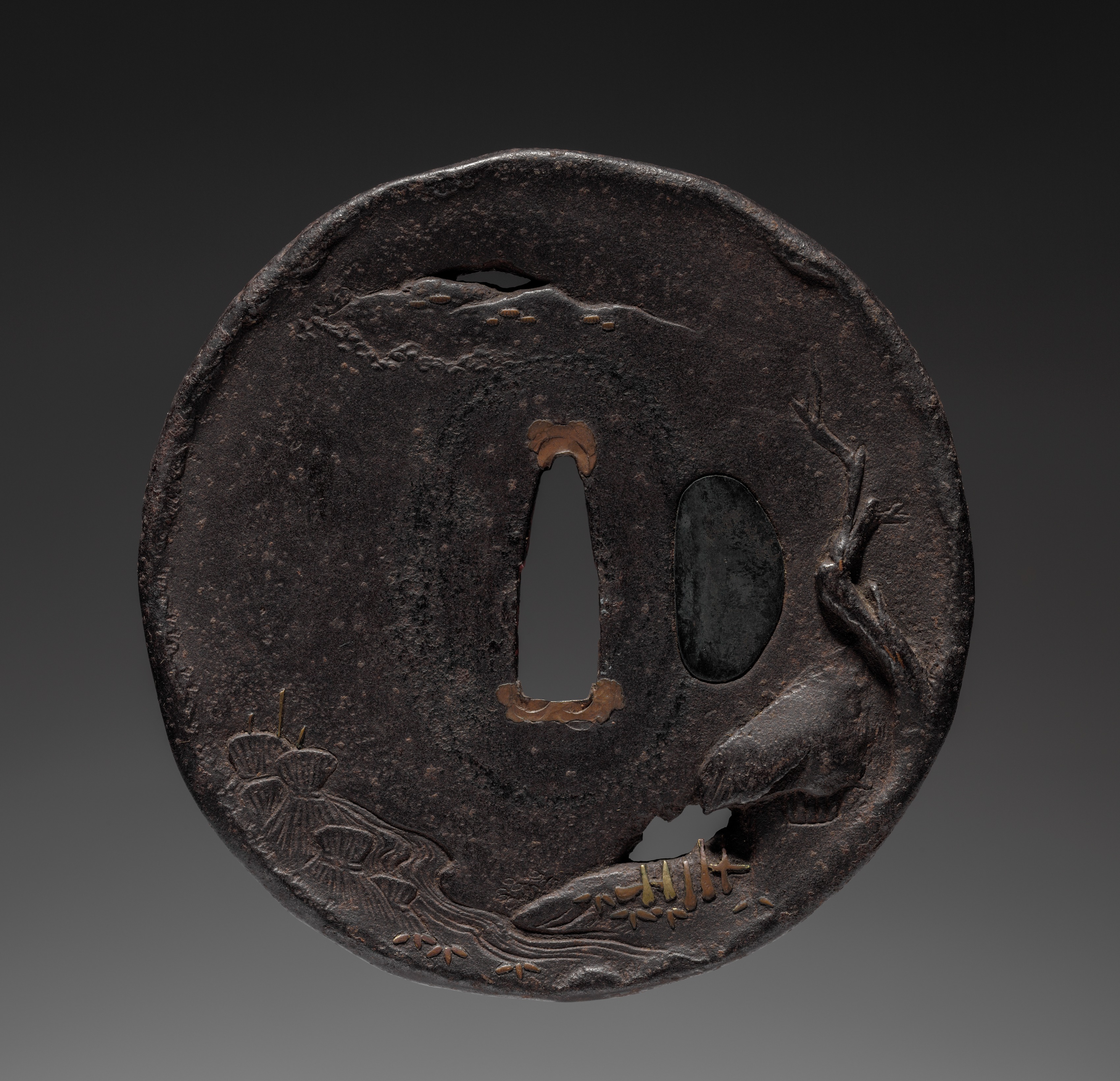 Sword Guard (Tsuba) with Rabbit and Waves