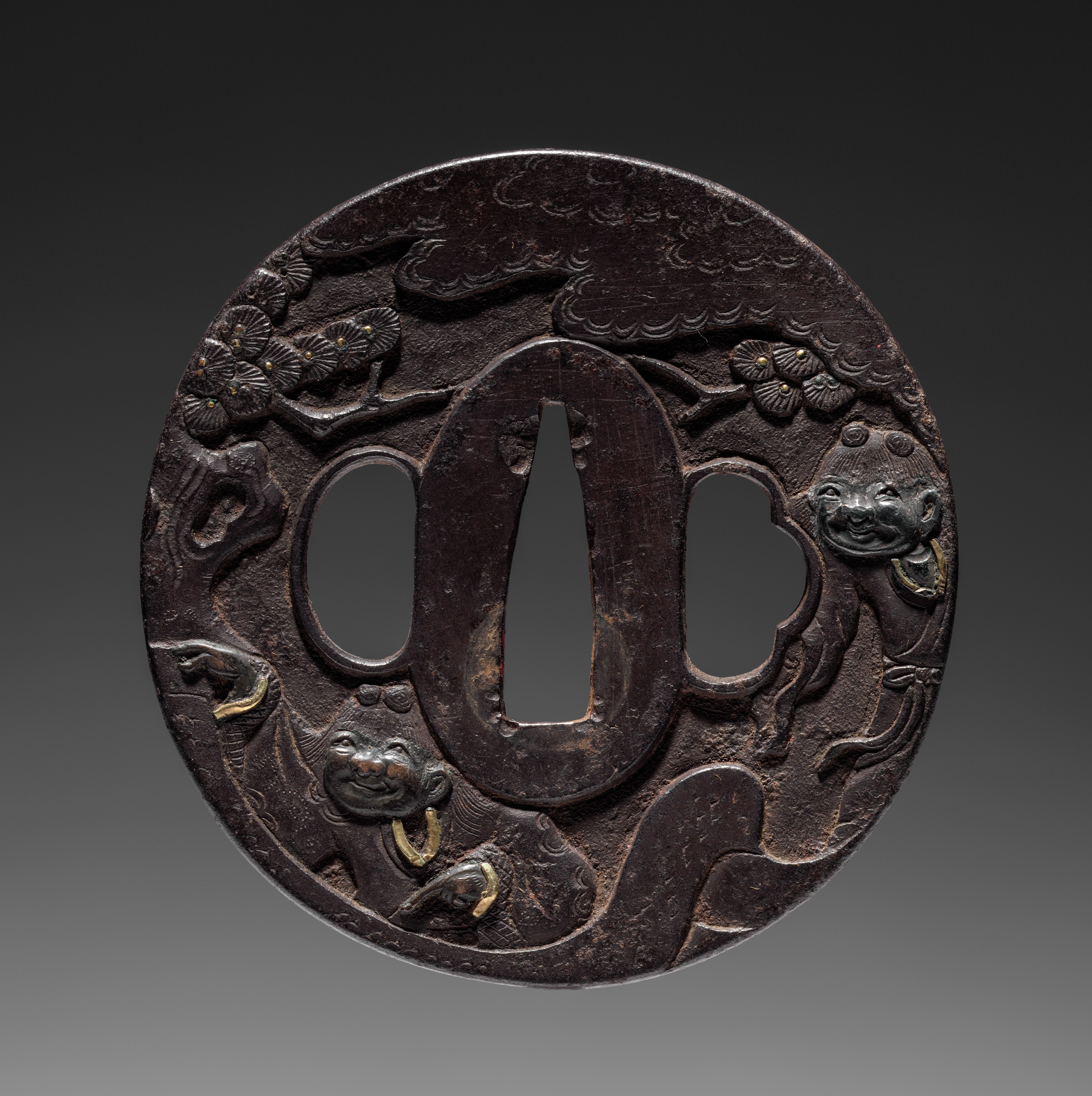 Sword Guard (Tsuba) with Peony and Lion with Ball