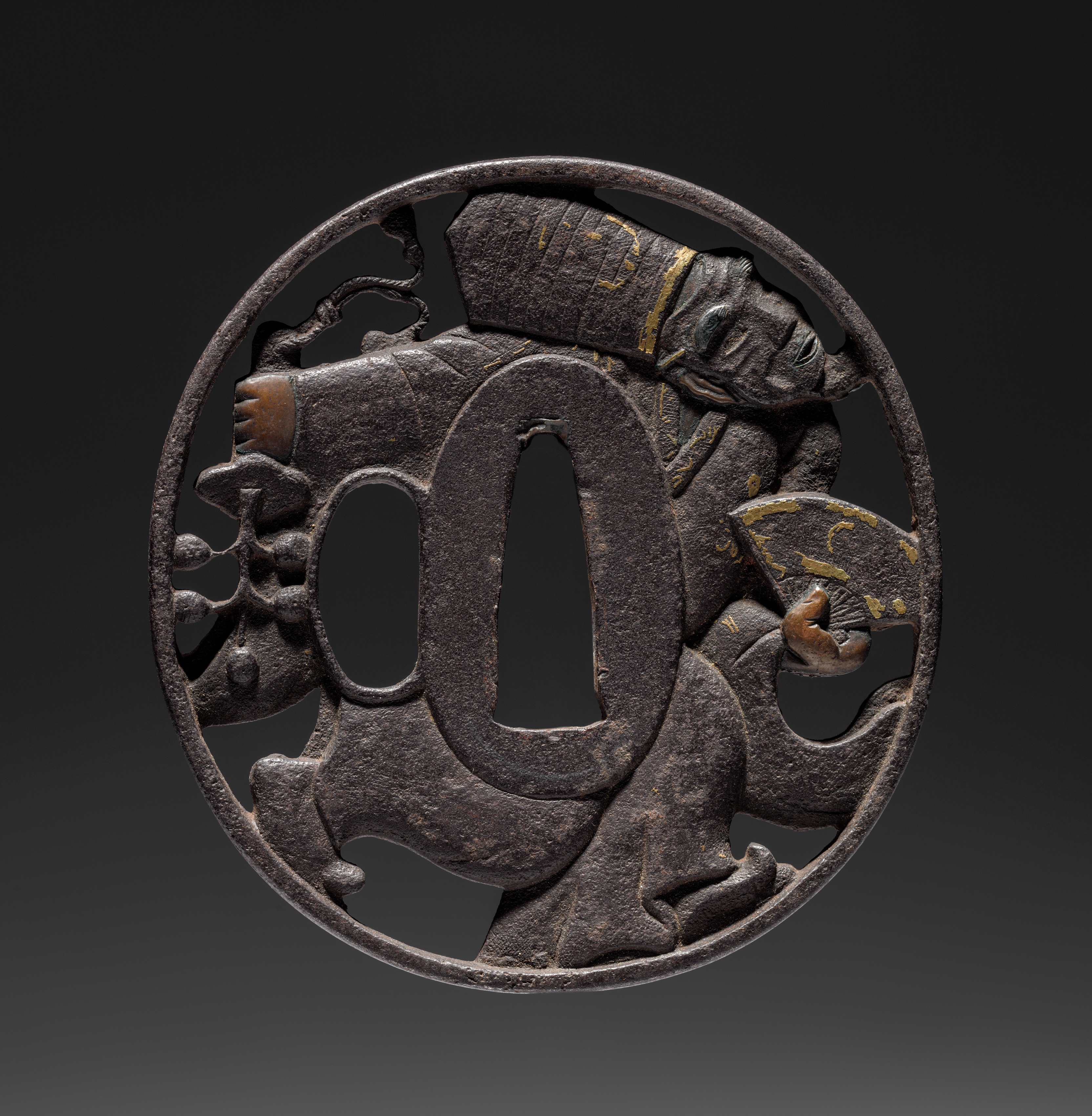 Sword Guard (Tsuba) with Dragon, Lion, and Sea Monster
