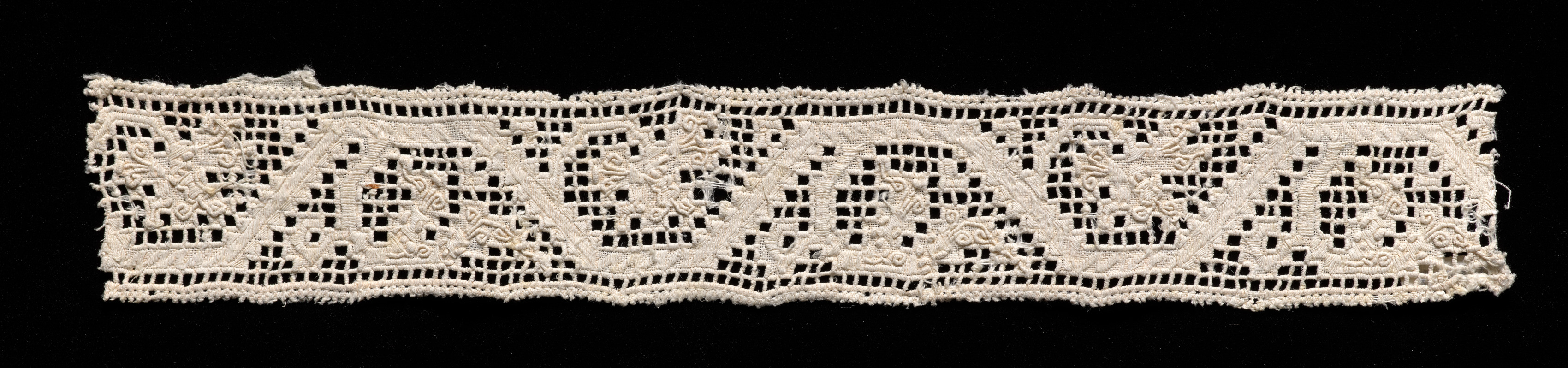 Needlepoint (Drawnwork) Lace Insertion with Bobbin Lace Edging of Points