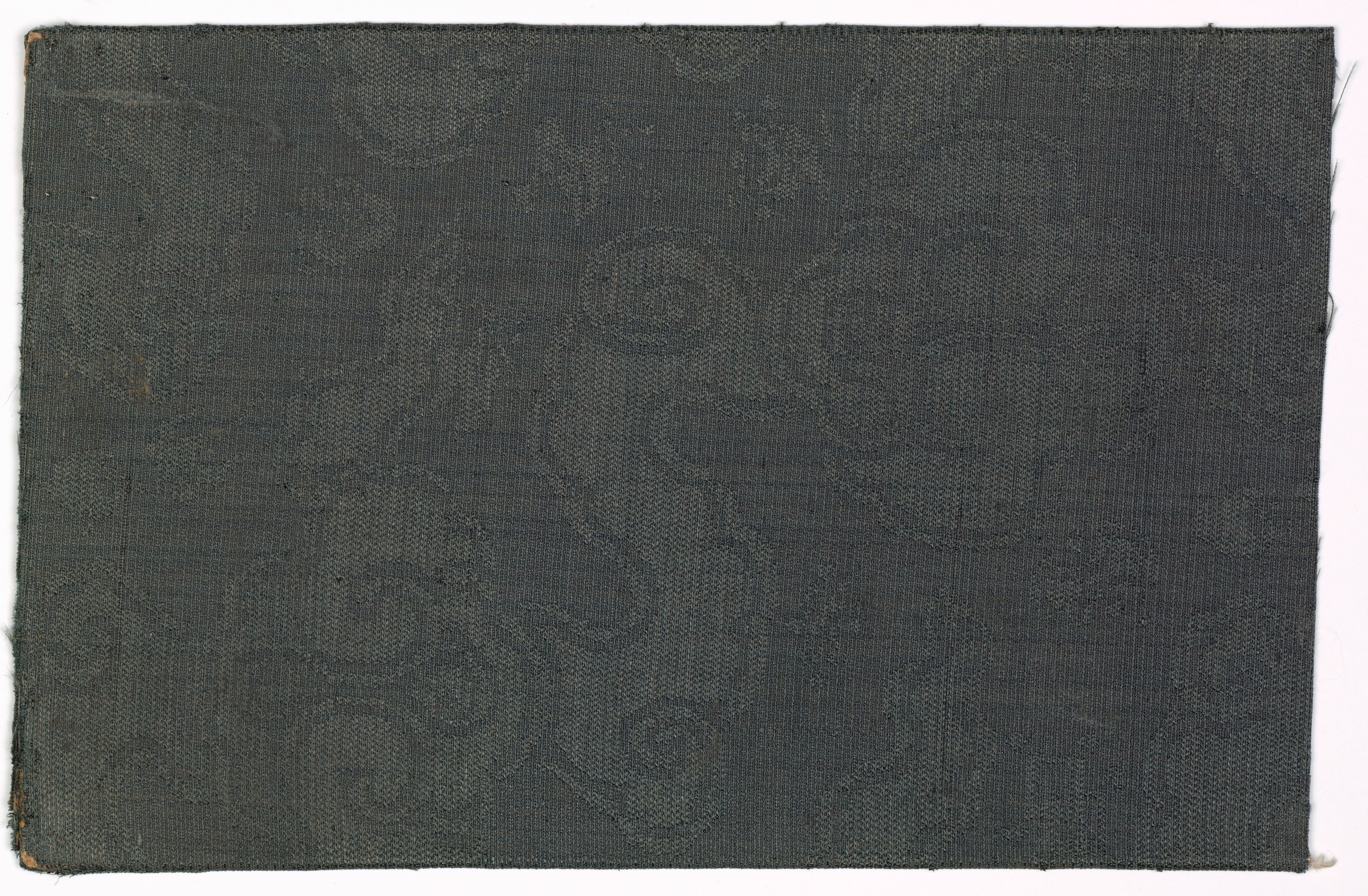Dark green book cover with a subtle floral pattern; the cover is made of a textured fabric material with a slightly rough and frayed edge; the background of the image is white.