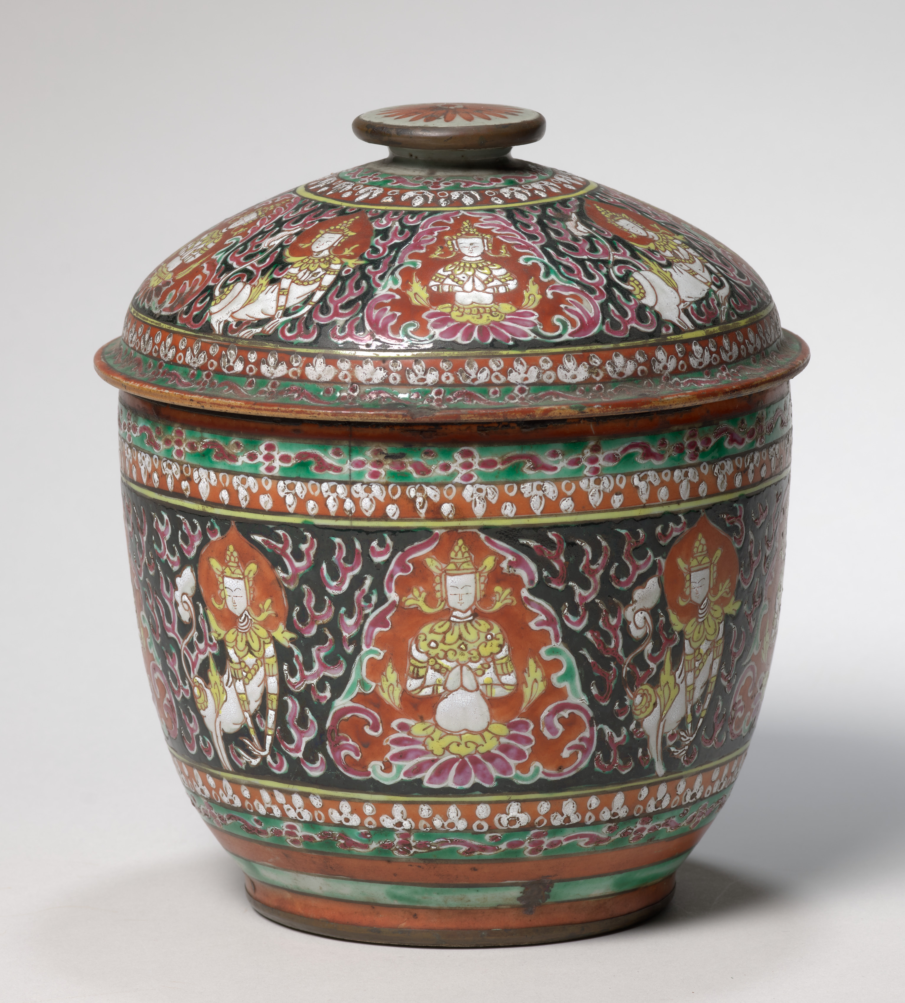Covered bowl with Thai mythical figures