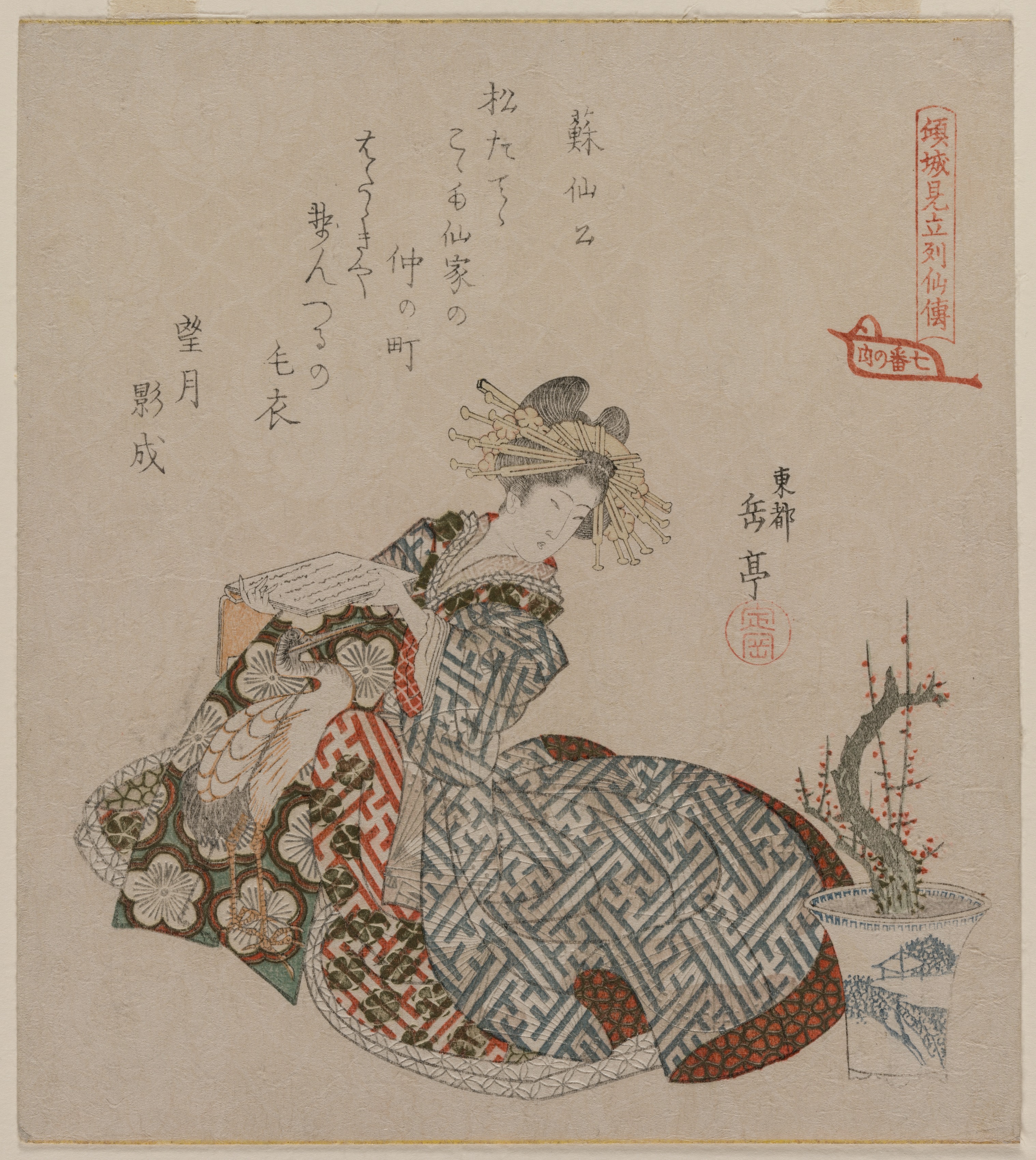 Courtesan Reading Beside a Potted Plum Tree, from the series Seven Courtesans Compared to Daoist Immortals