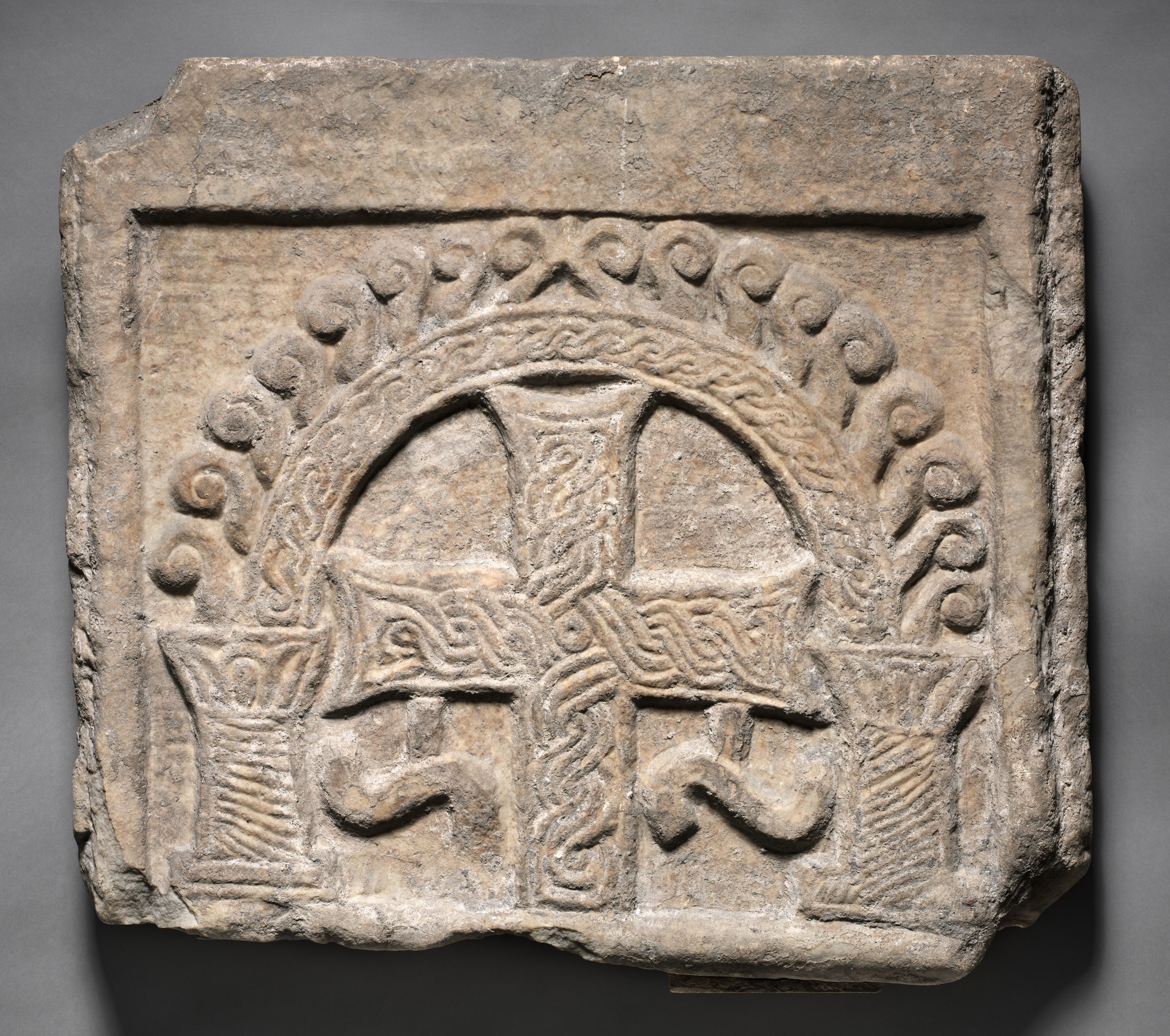 Relief Panel from the End of a Sarcophagus: A Cross Within an Arch