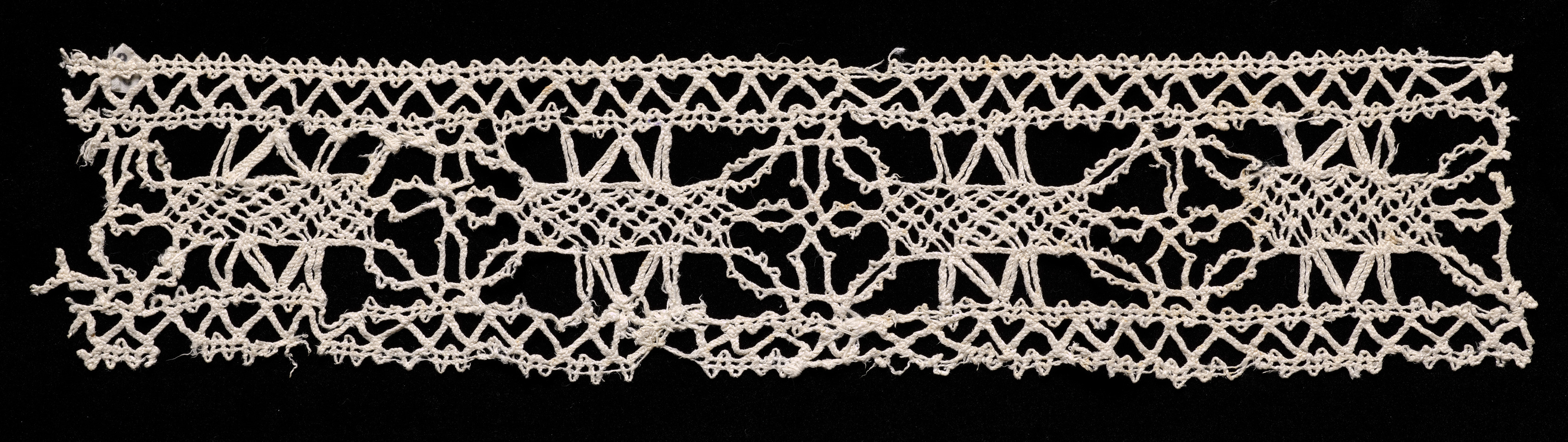 Needlepoint (Drawnwork) Lace Insertion with Bobbin Lace Edging of Points