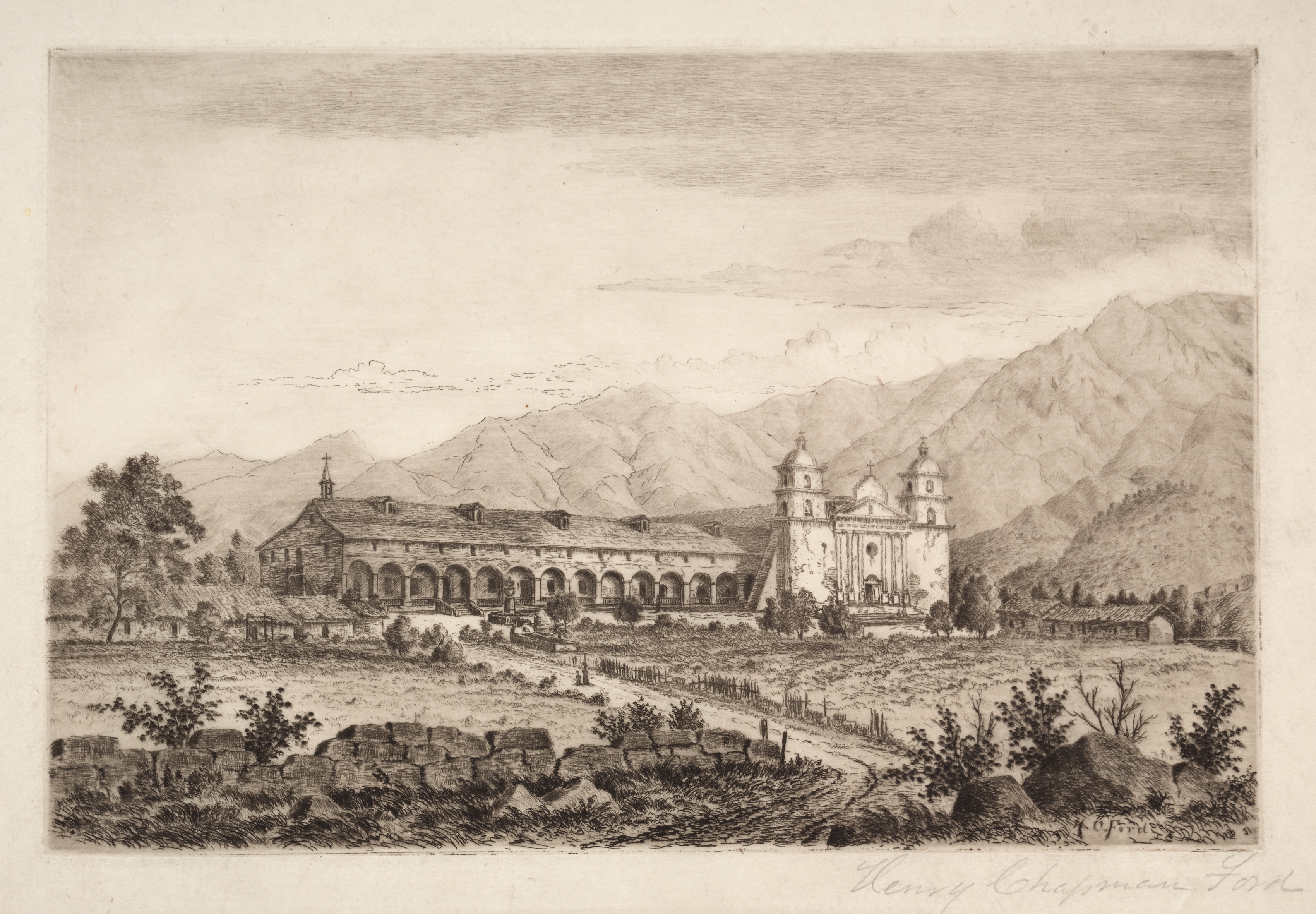 Santa Barbara Mission, from the series, Etchings of the Franciscan Missions of California