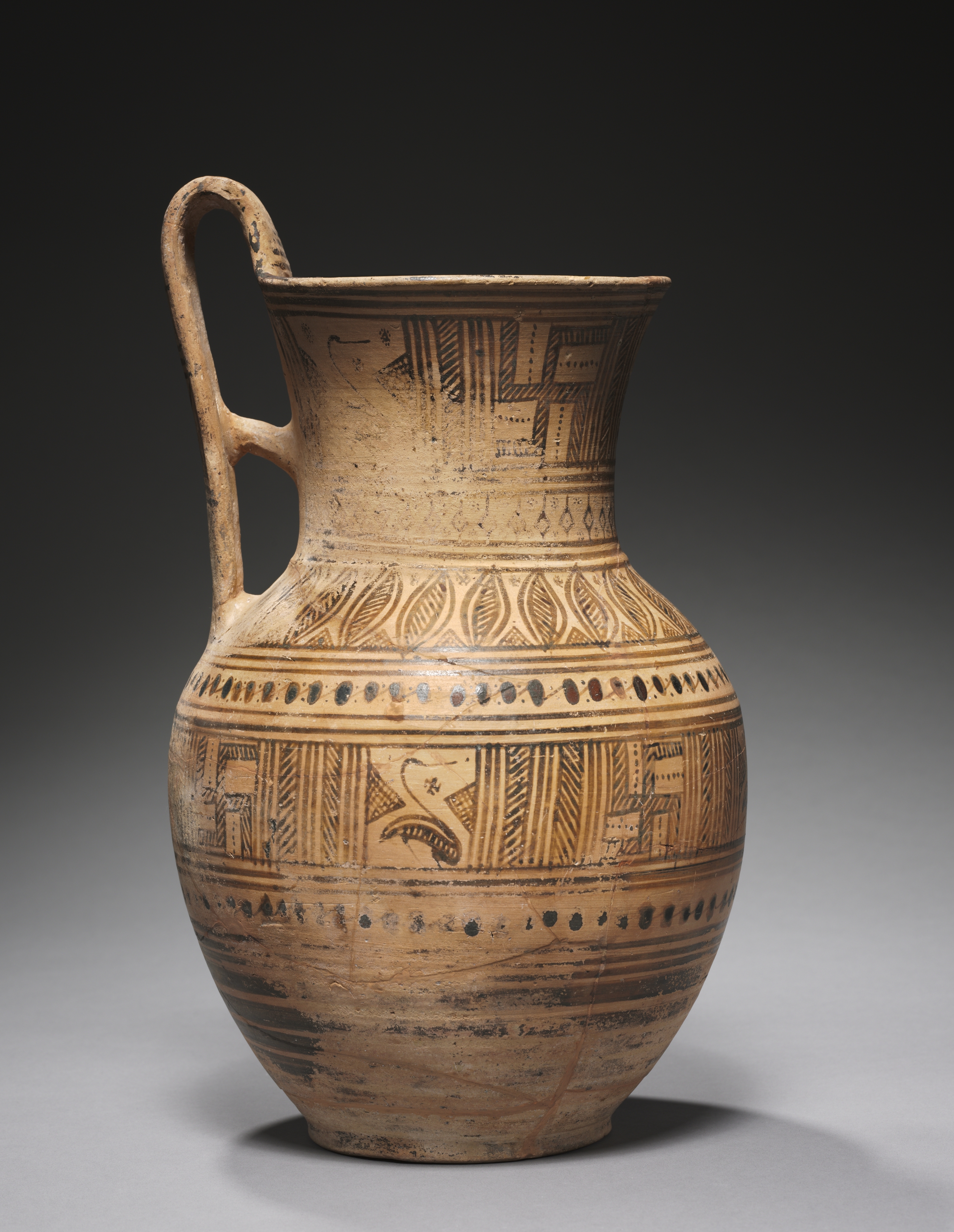 Black-Figure Oinochoe (Wine Jug): Hercle (Herakles) and Pholos; Cattle (of Geryon?)
