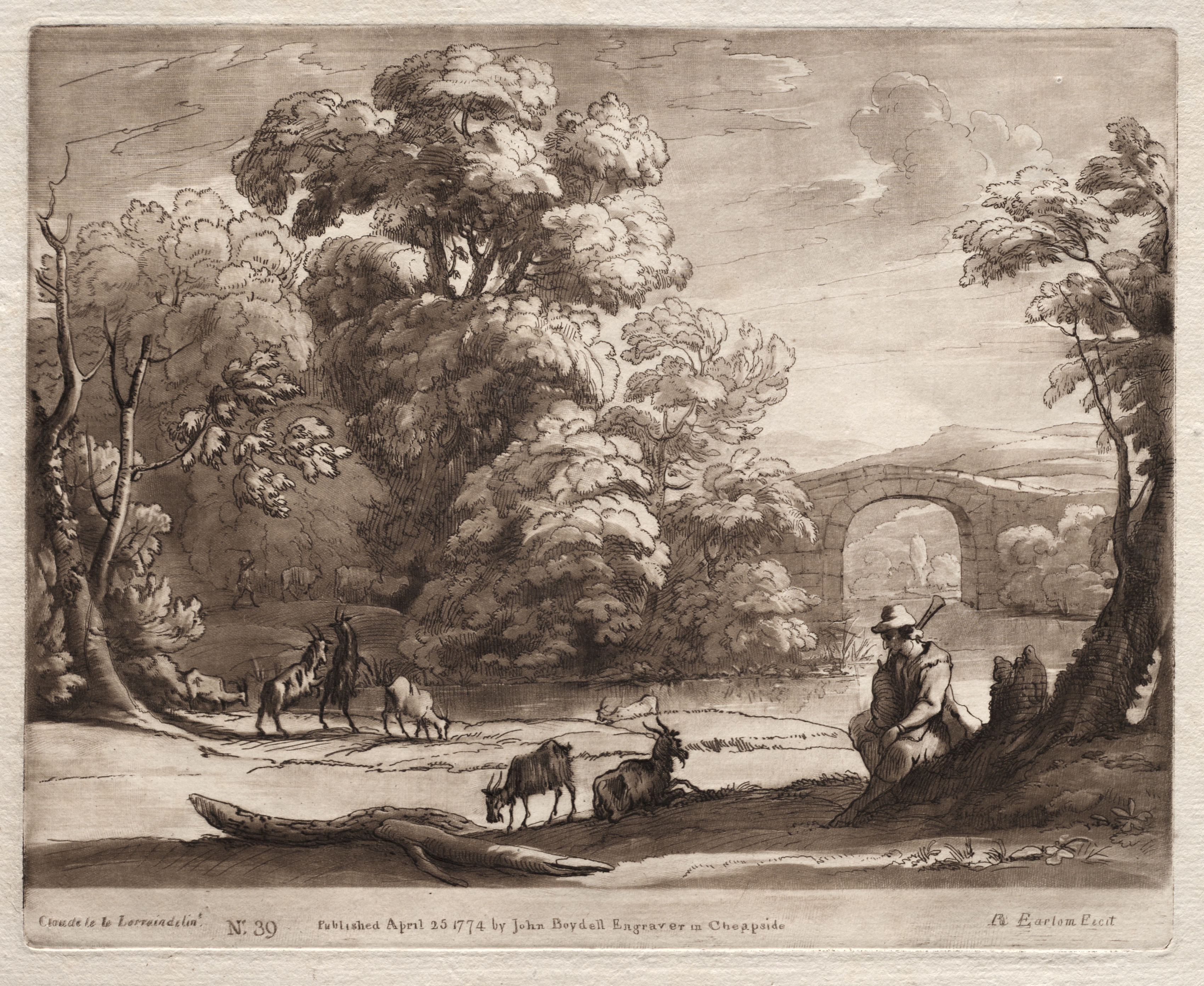 Liber Veritatis: No. 39, A Landscape with Herdsman Playing a Bagpipe and Goats Browsing