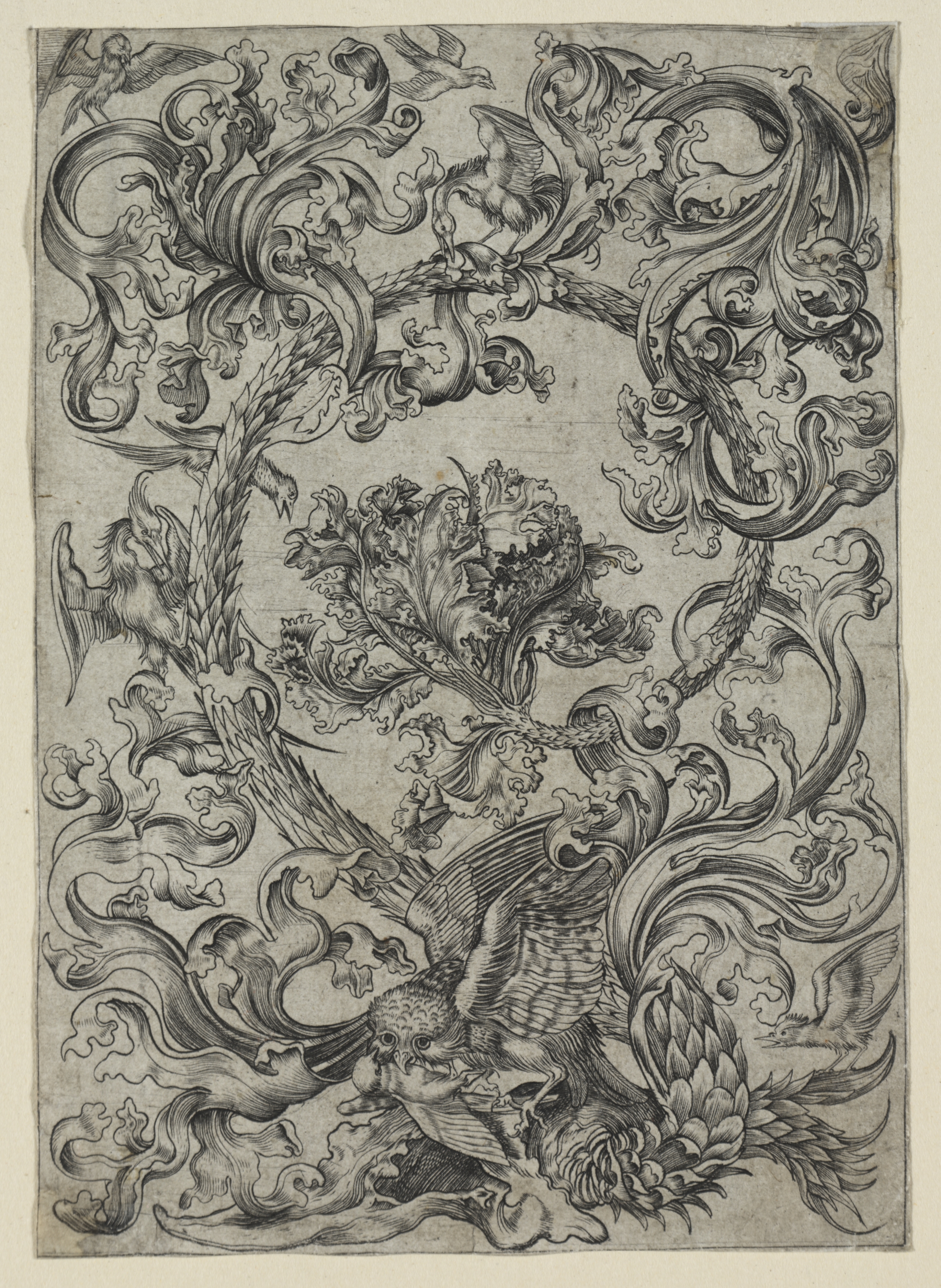 Ornament Design with a Mask and an Eagle between Two Fauns Below