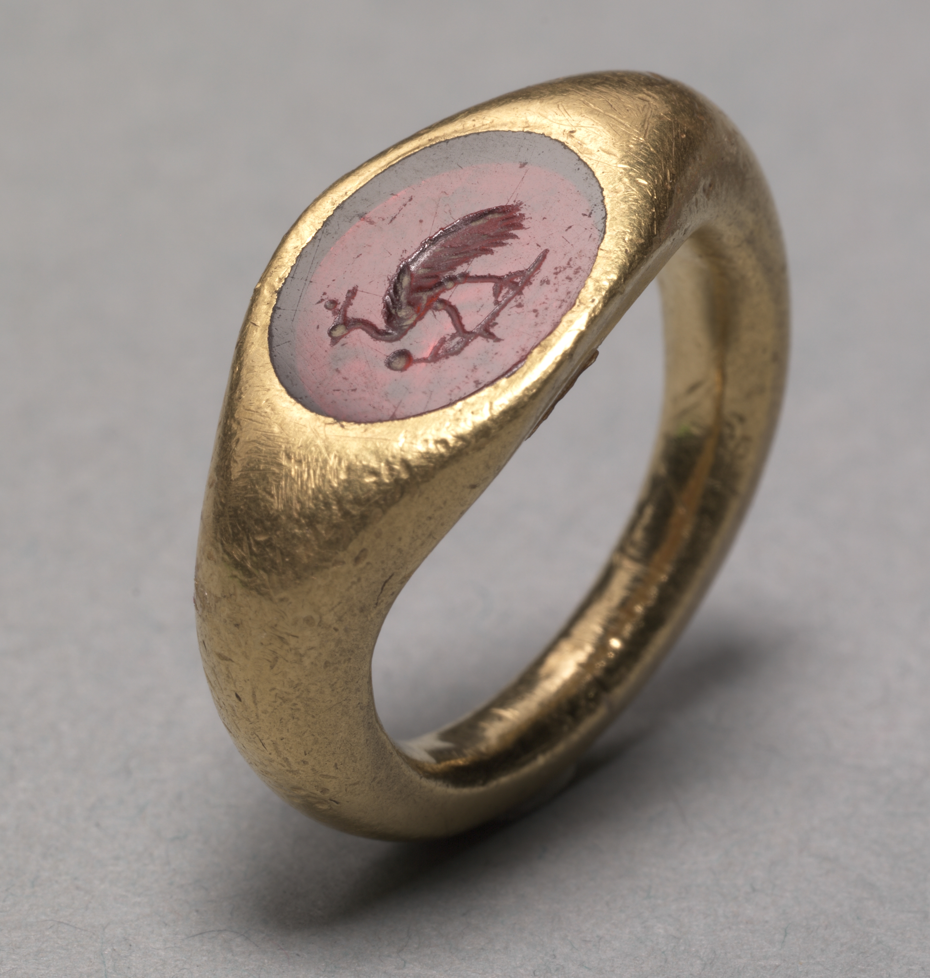 Ring with Circular Bezel with Inscribed Fish Motif and "Sri"
