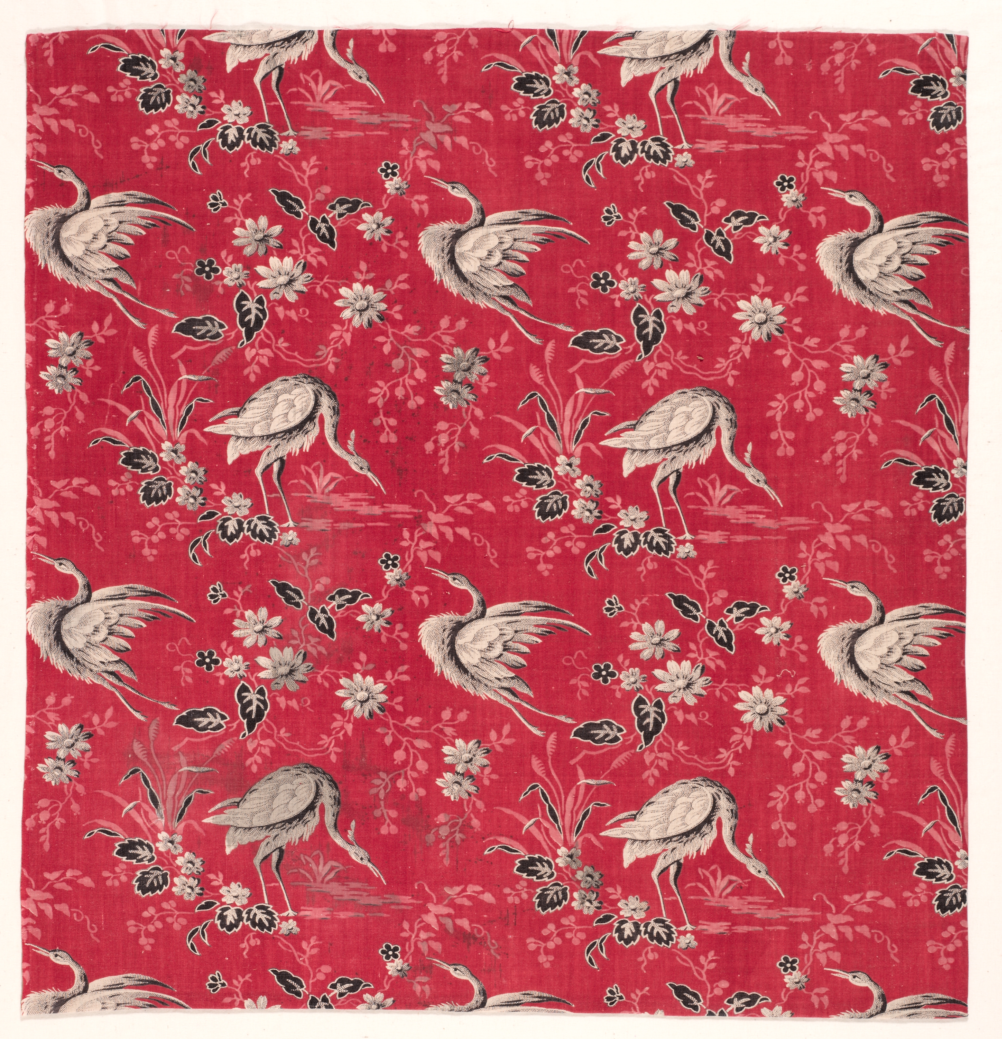 Roller-Printed Cotton with Heron and Flower Design