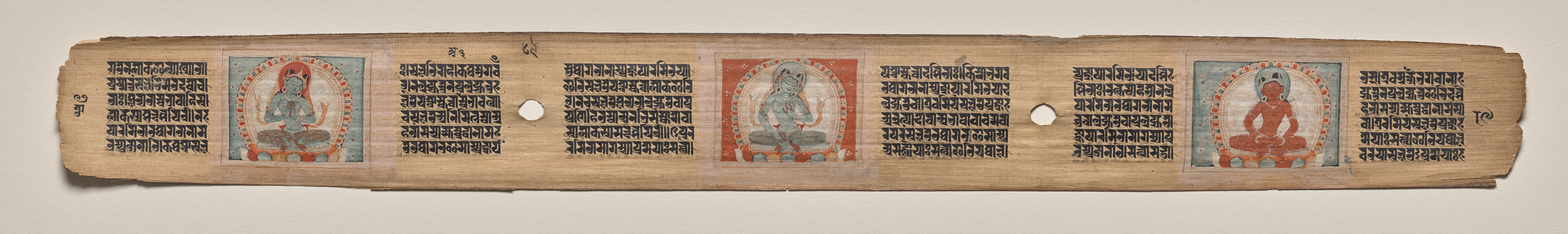 Prajnaparamita flanked by two bodhisattvas, folio 187 (recto), from a Manuscript of the Perfection of Wisdom in Eight Thousand Lines (Ashtasahasrika Prajnaparamita-sutra)