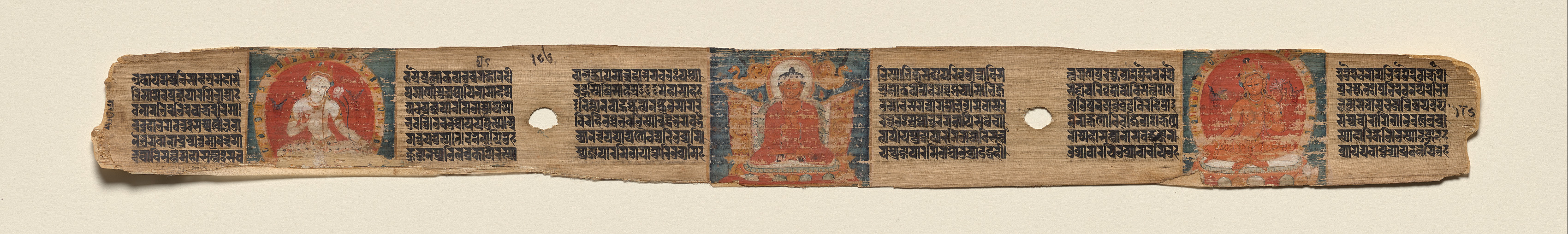Prajnaparamita flanked by two bodhisattvas, folio 187 (recto), from a Manuscript of the Perfection of Wisdom in Eight Thousand Lines (Ashtasahasrika Prajnaparamita-sutra)