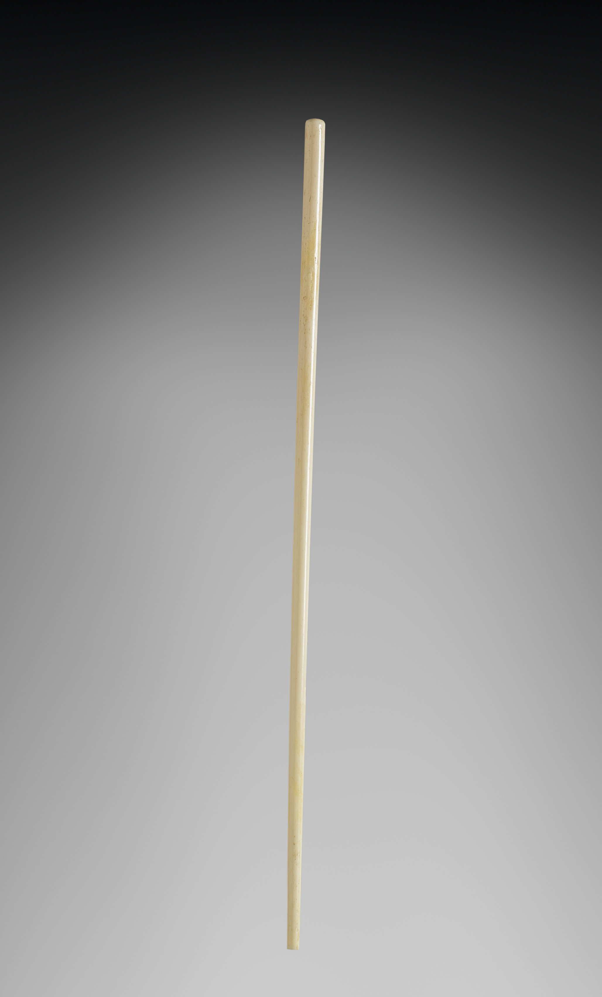 The image shows a single chopstick. The chopstick is long and thin, made of light-colored wood or plastic. It tapers very slightly from top to bottom, with a rounded top. The background is a gradient that transitions from black at the top to gray at the bottom. The chopstick appears to be floating in the center of the image. Chopstick for Chopstick and Knife Kit -Souvenir Trade.