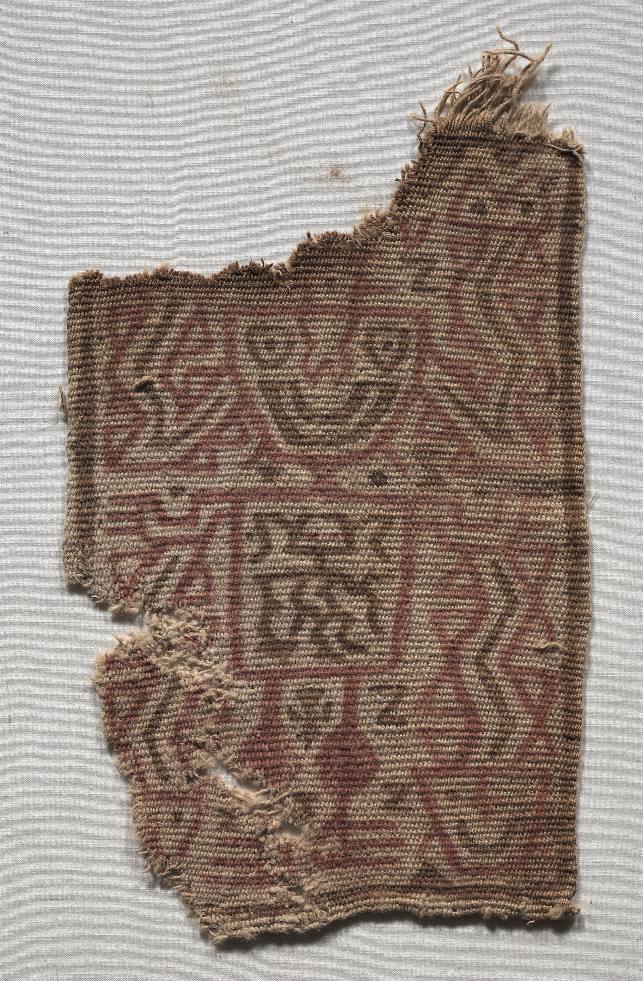 Textile Fragment with Three Frontal Deities and Interlace Pattern