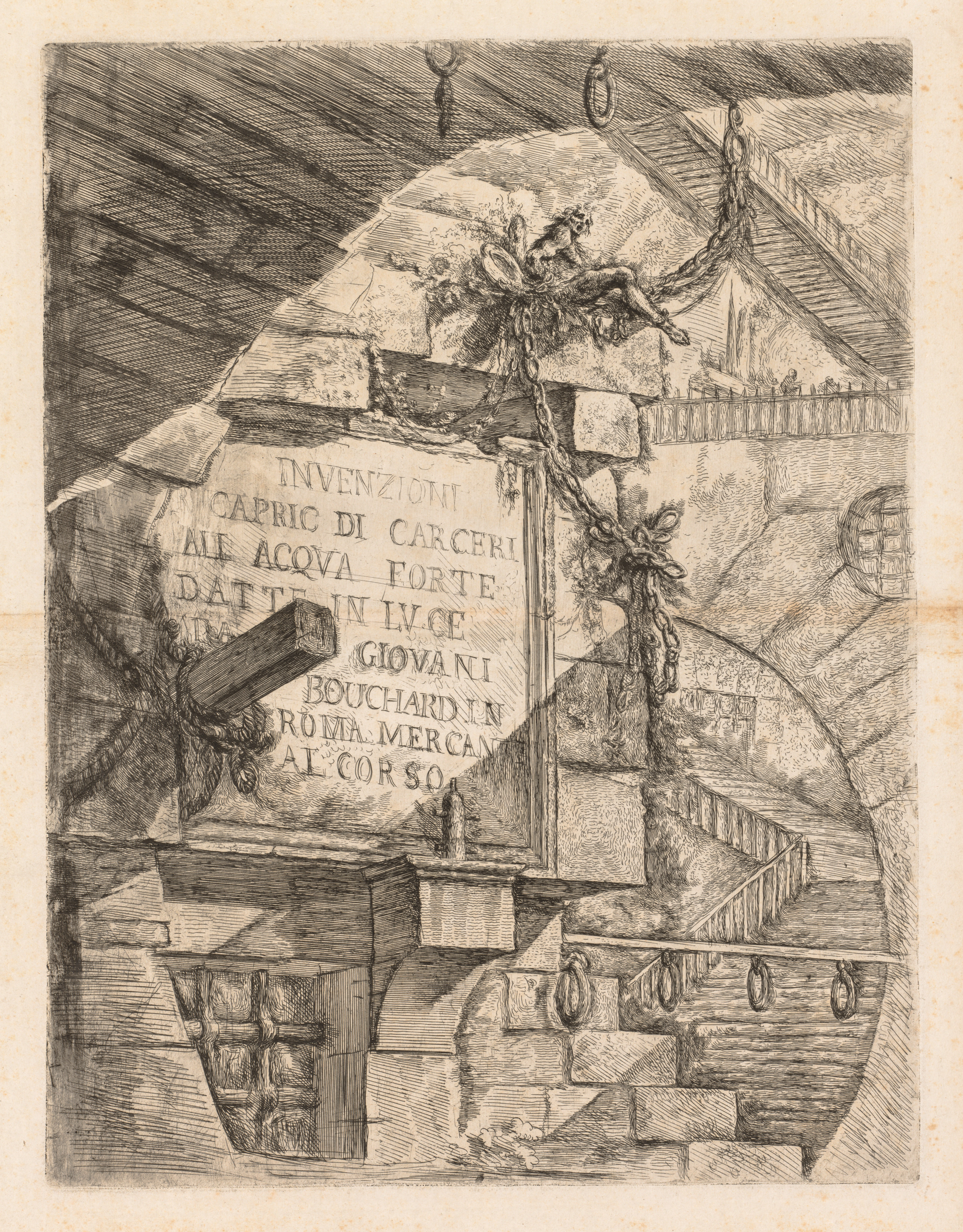 The Prisons: A Perspective of Arches with a Smoking Fire