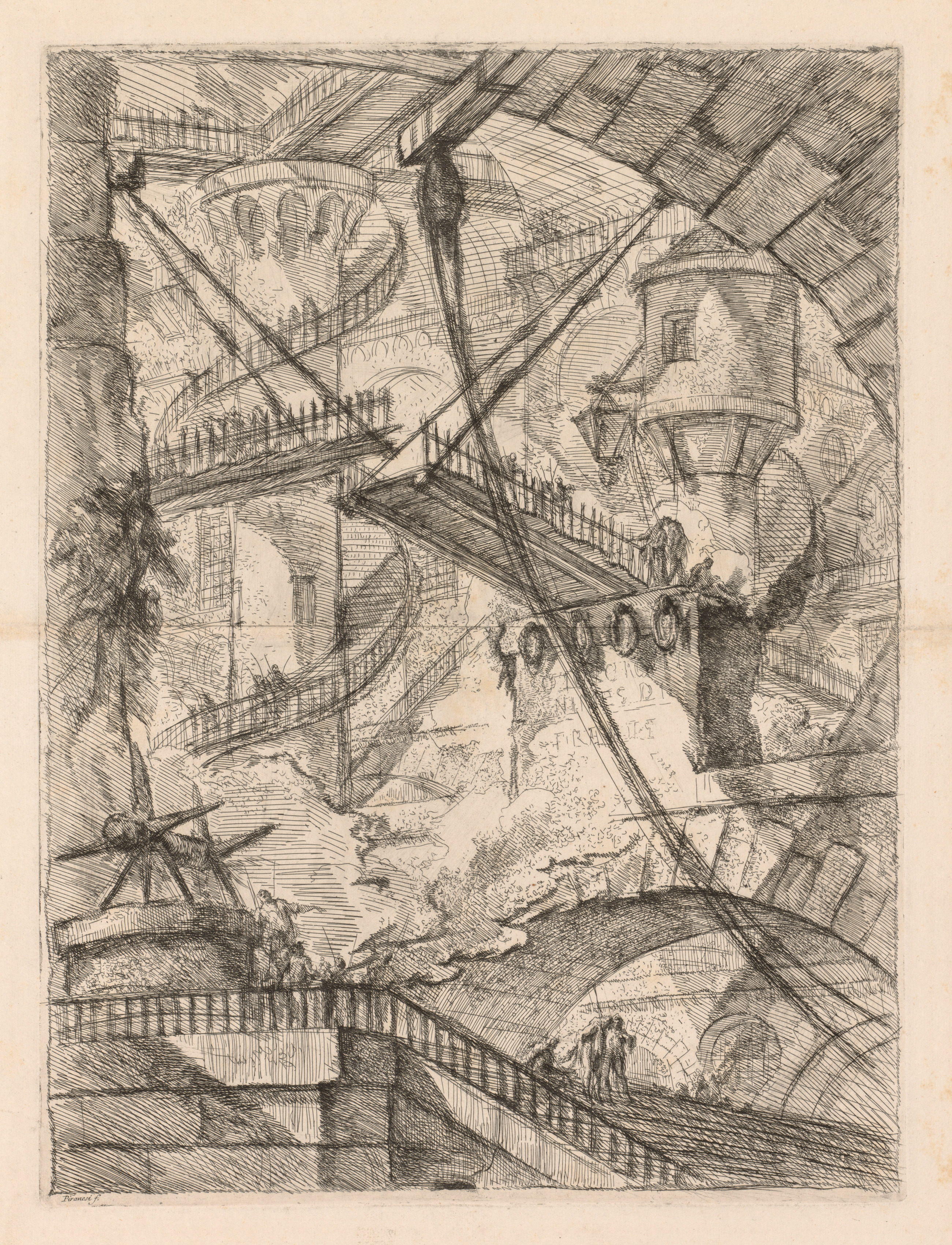 The Prisons: A Perspective of Arches with a Smoking Fire in the Center