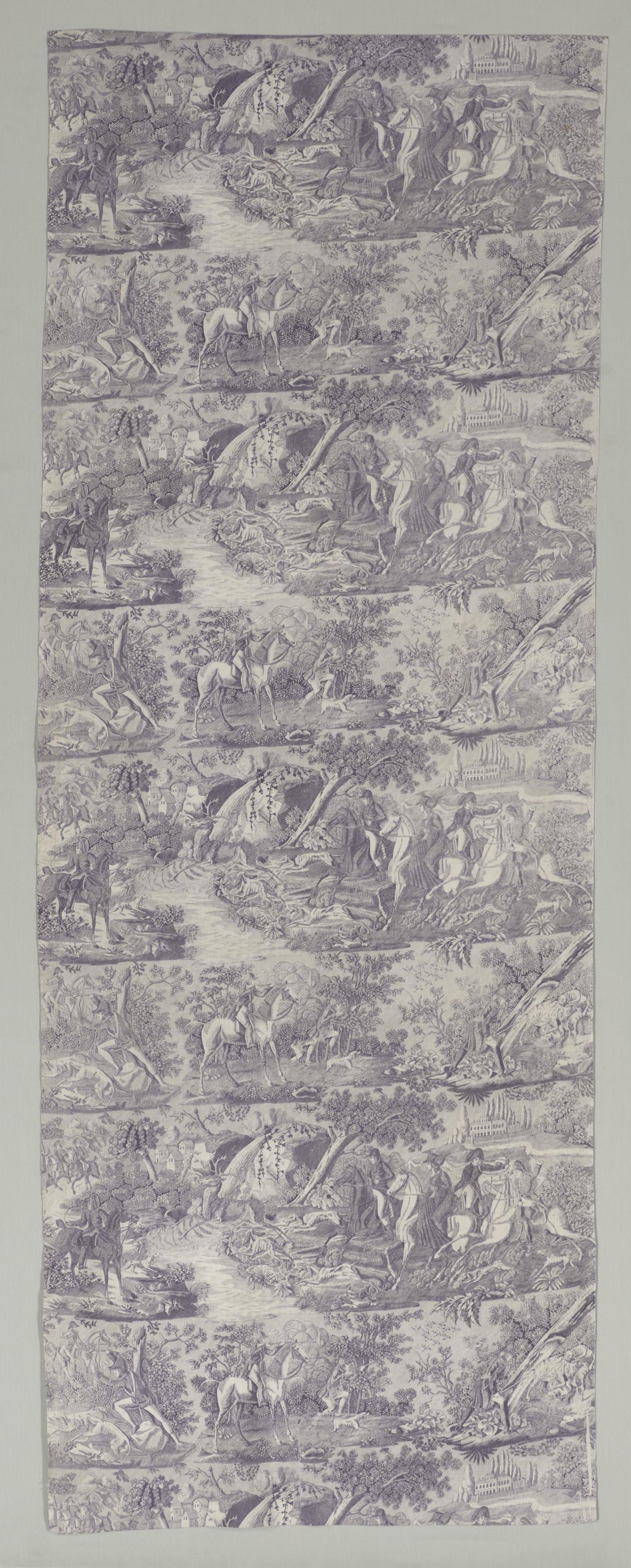 Fragment of Copperplate Printed Cotton with Hunting Scene Design