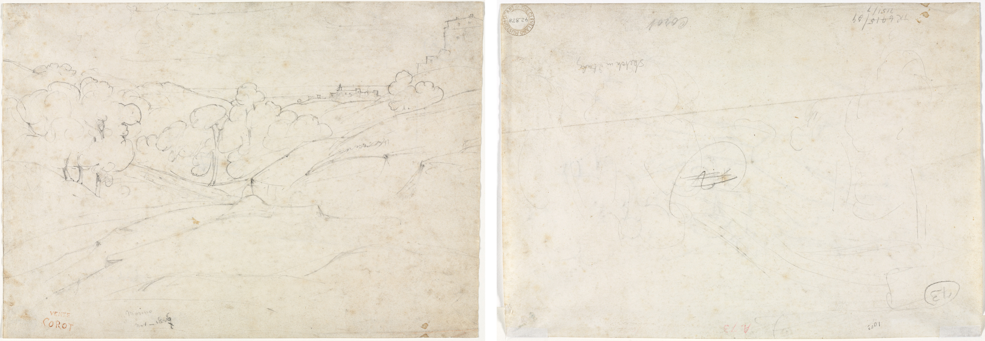 View of Marino (recto); Sketch for a Landscape (verso)