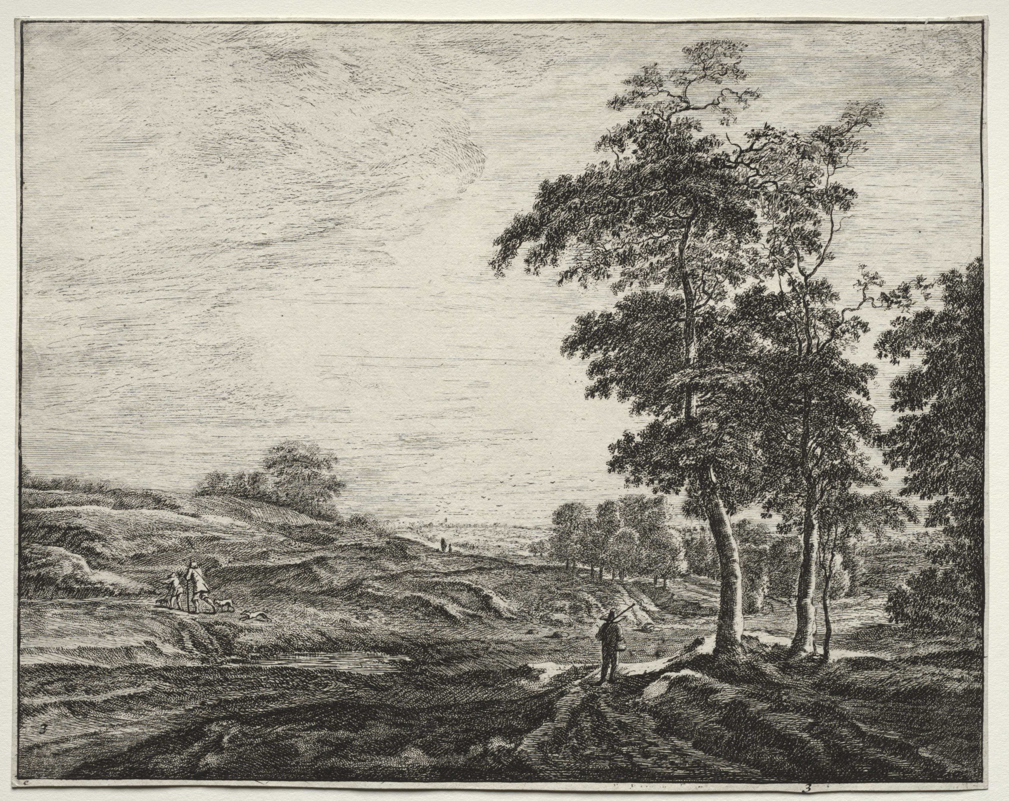 Six views in the Wood of the Hague: Plate 1, Two Men Preceded by a Hunter