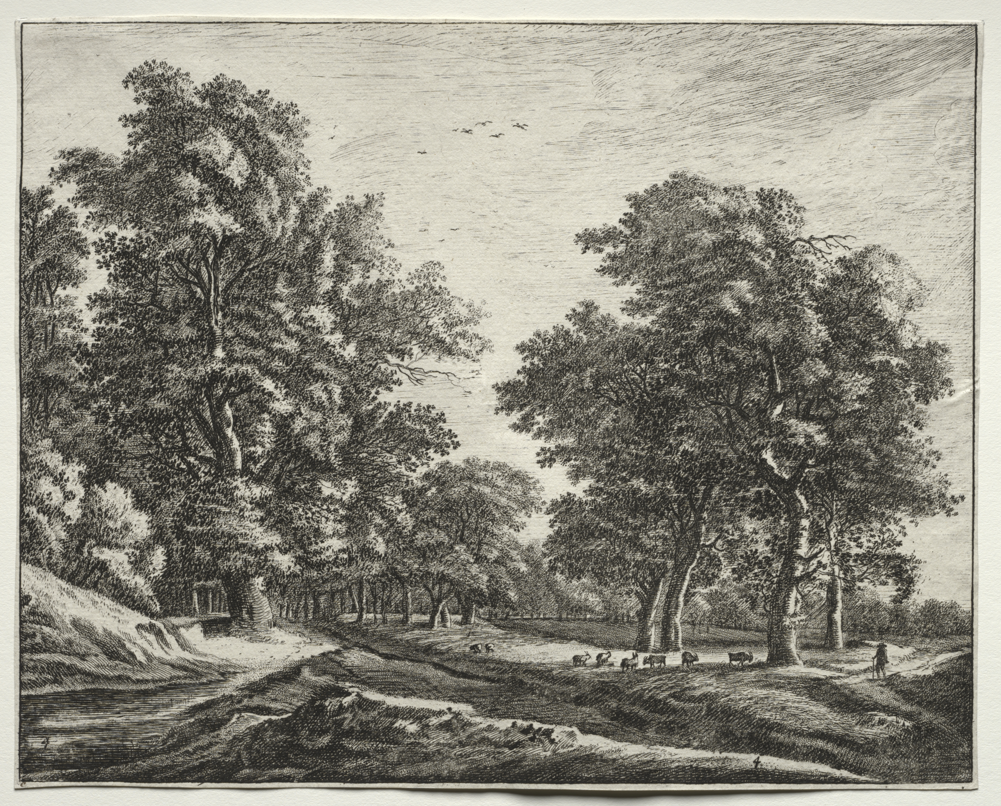 Six views in the Wood of the Hague: Plate 5, A Man with a Staff in His Hand