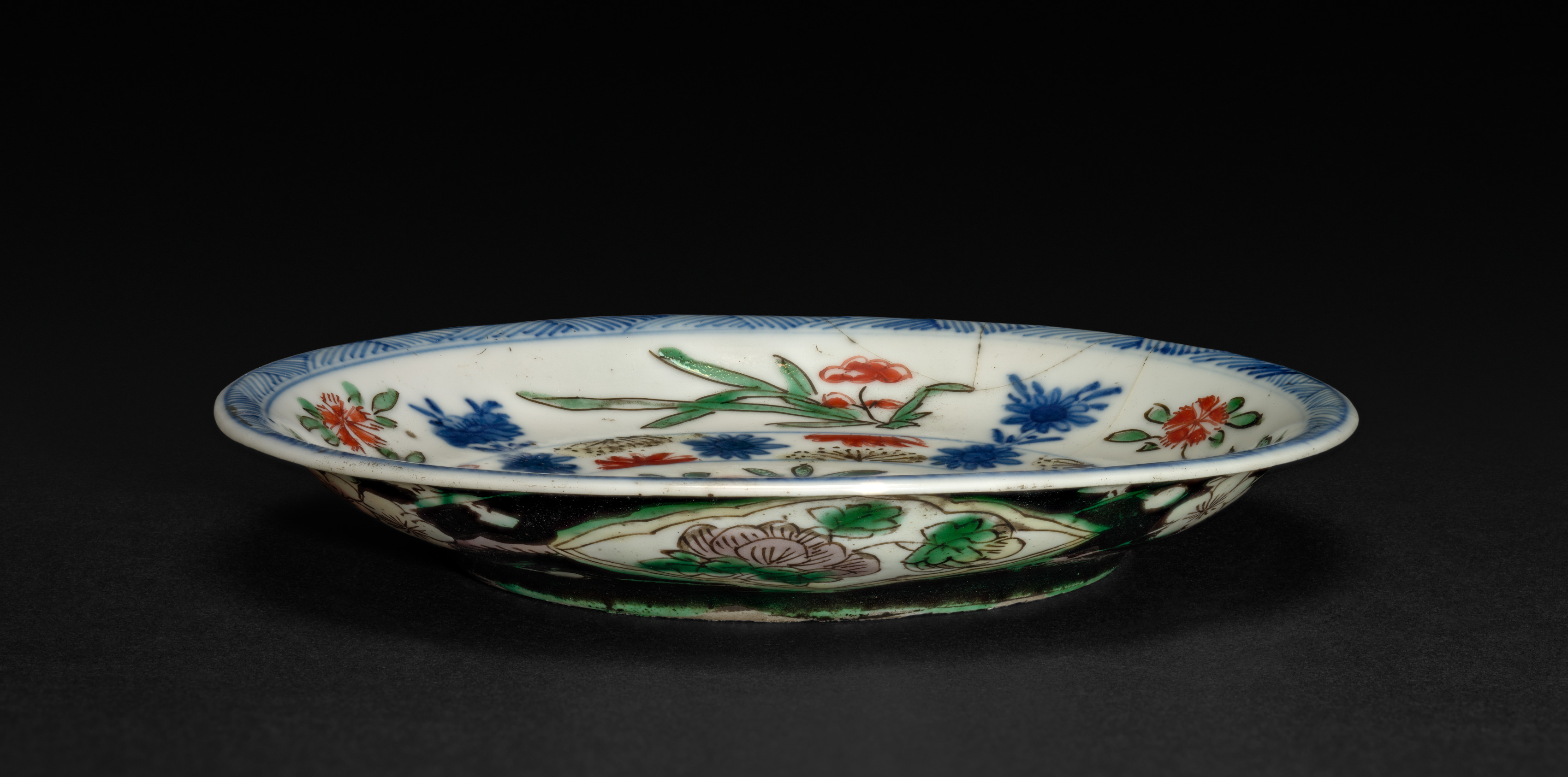 Deep Plate with Eight-Lobed Rim and Decoration of Birds, Flowers and Insects