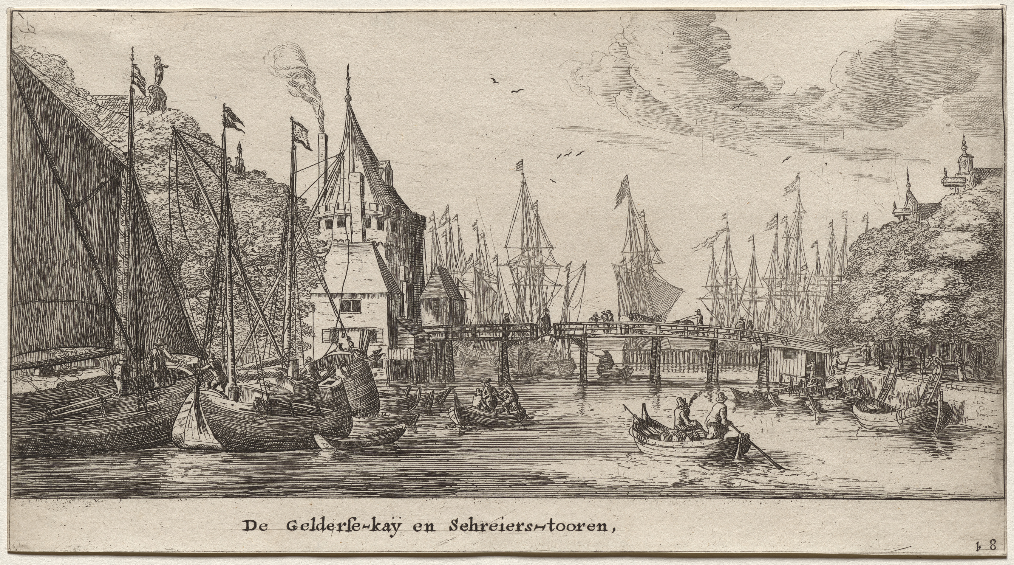 Various Ships and Views of Amsterdam (Verscheÿde Schepen en Gesichten van Amstelredam), Part II: The Geldersche Quai and Schreiers Tower