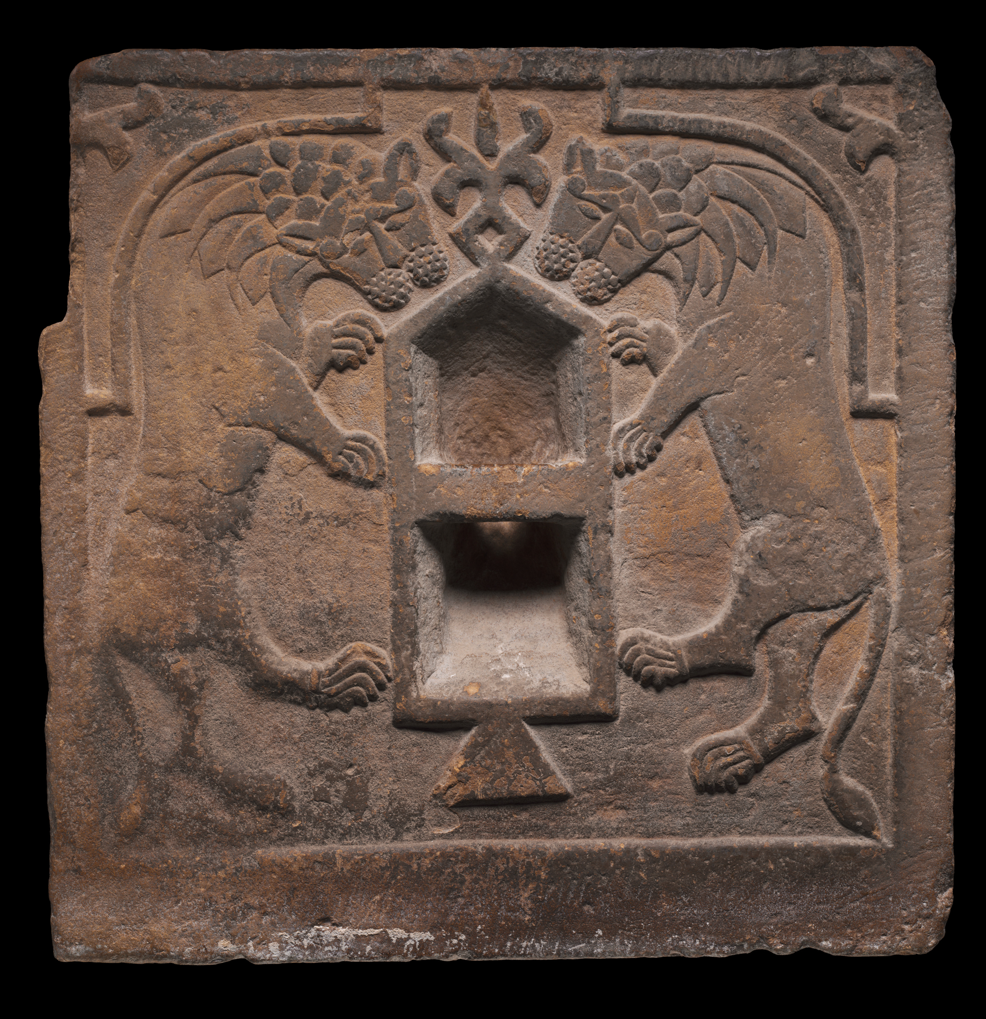 Relief Panel from the End of a Sarcophagus: A Cross Within an Arch
