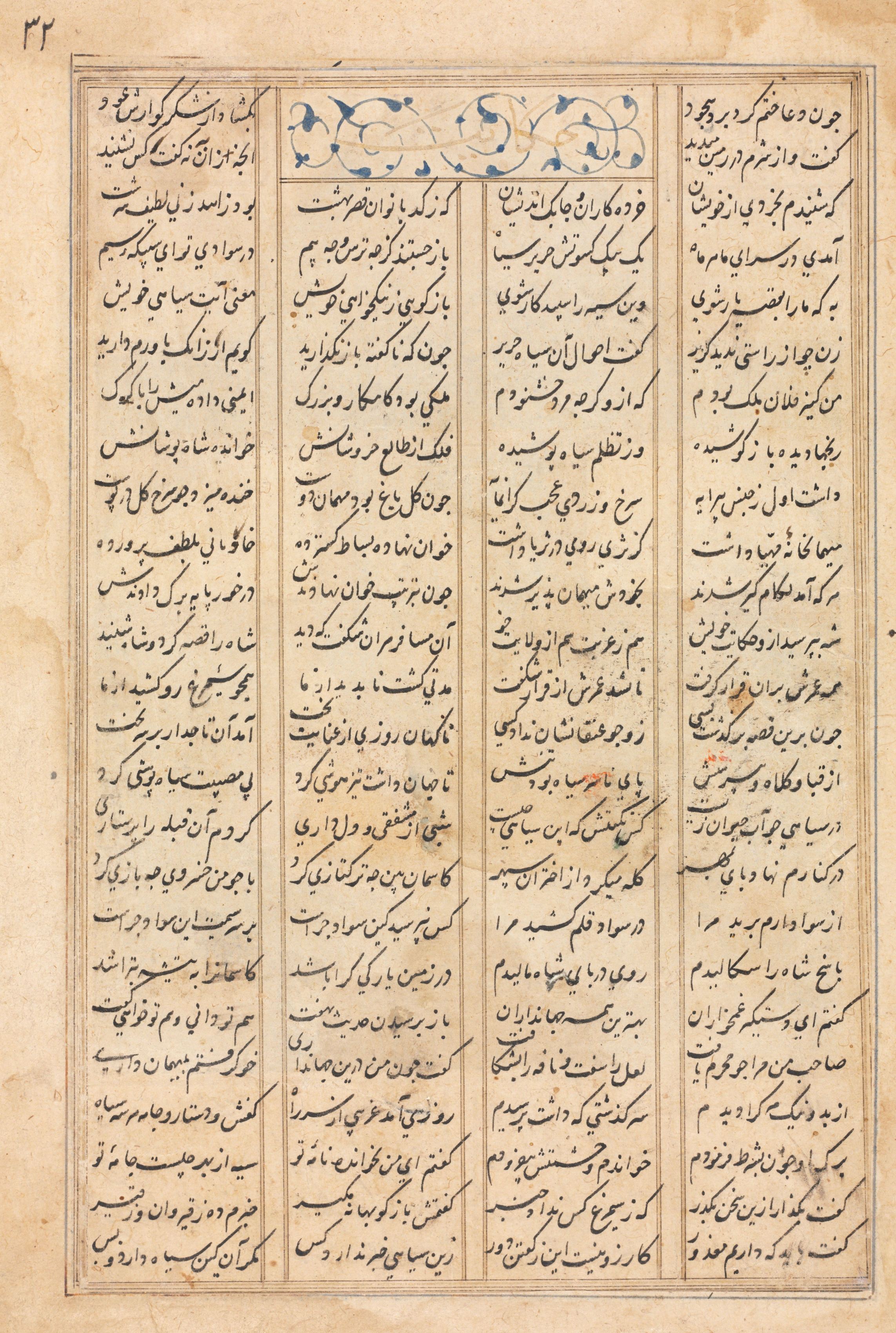 Persian verses (verso) from a Shahnama (Book of Kings) of Firdausi (940-1019 or 1025)