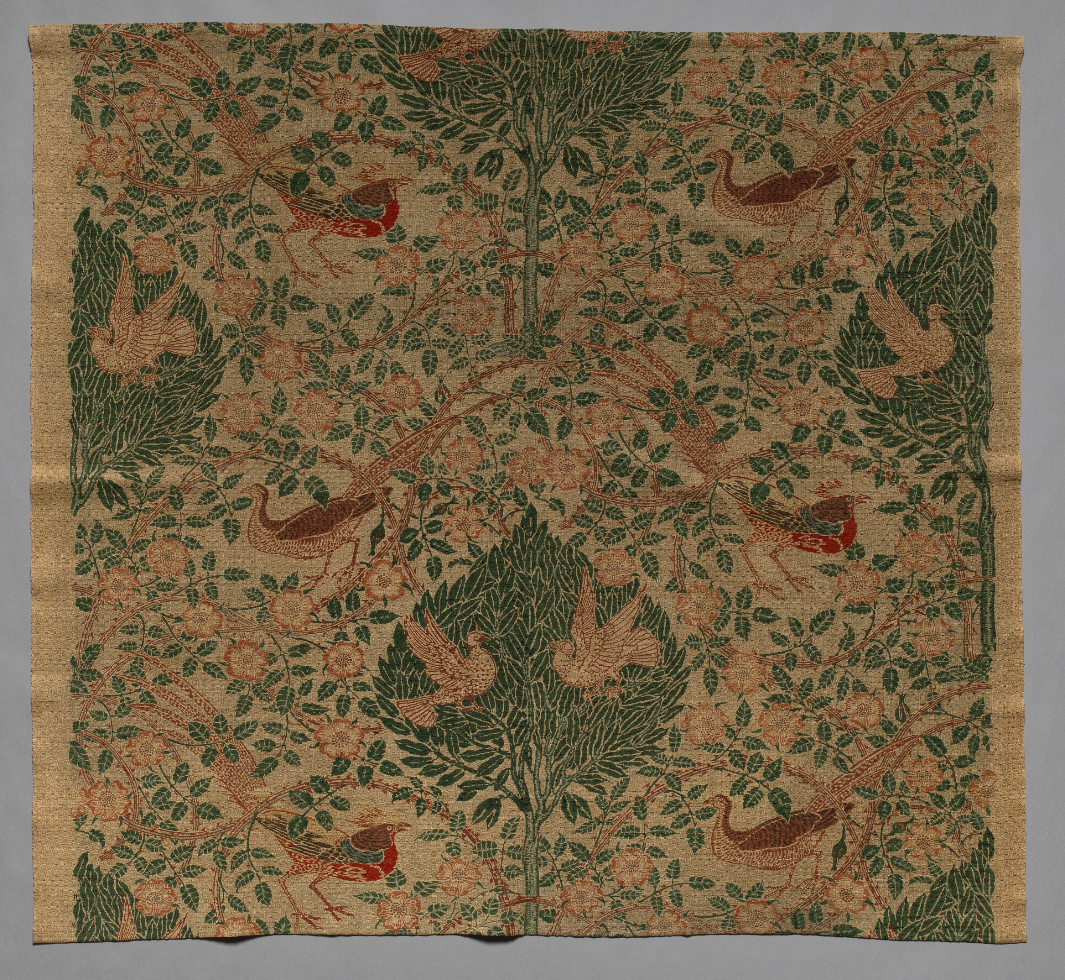 Fragment of Silk Taffeta with “Rose and Nightingale” Motif