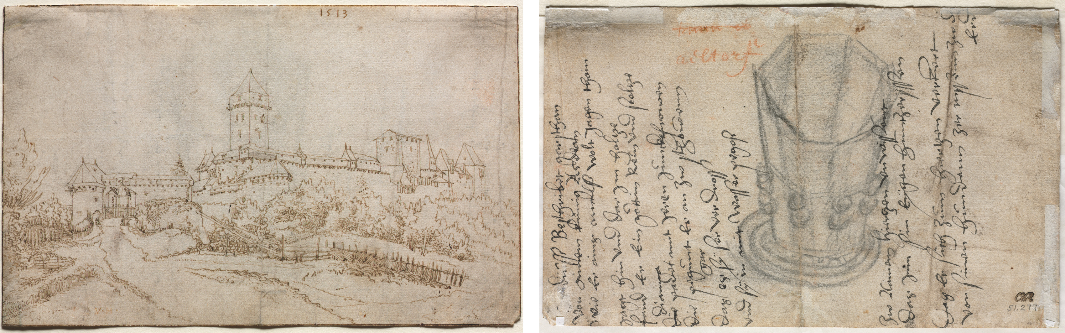 Study of Heads (recto); Crenelated Fortress (verso)