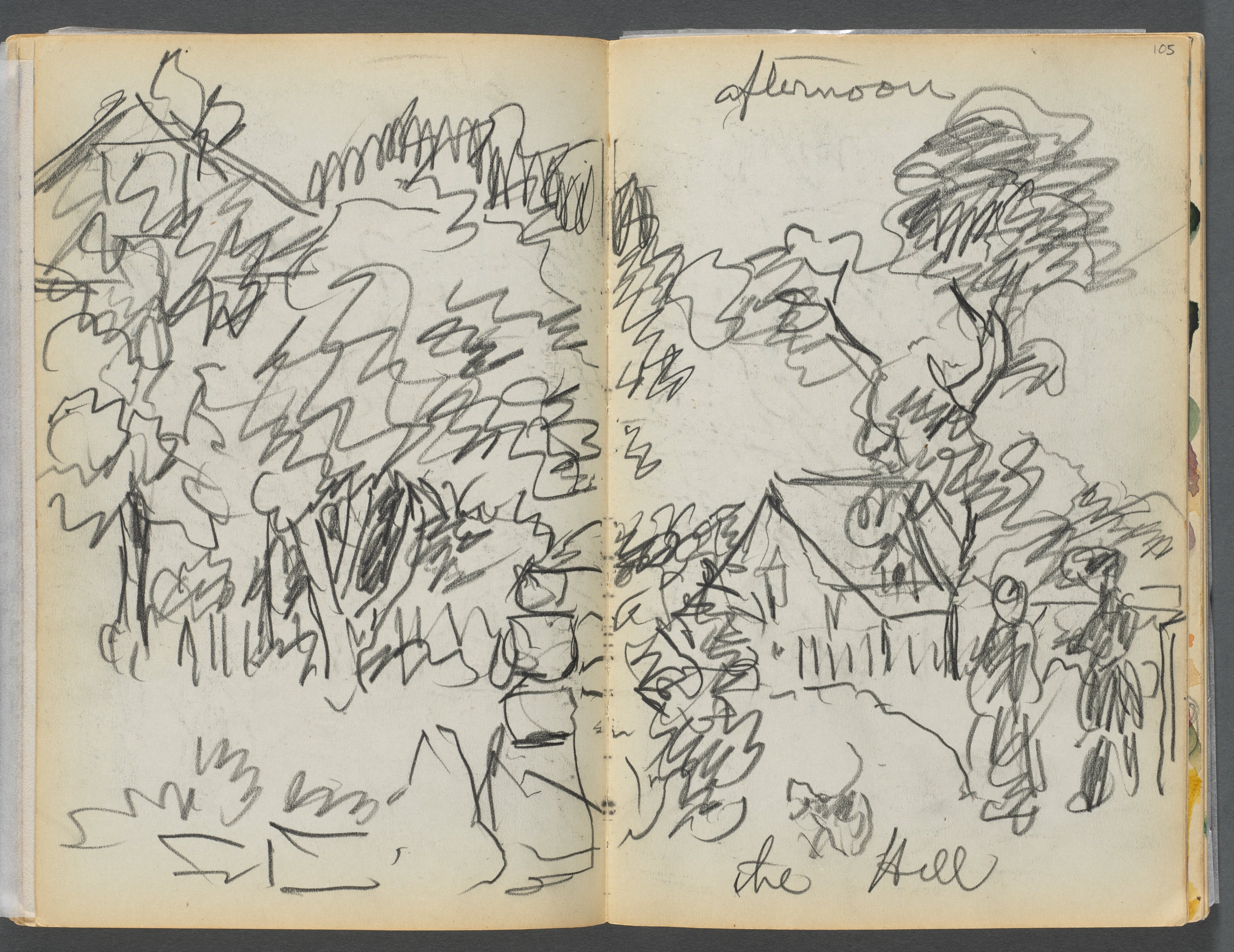 Sketchbook- The Granite Shore Hotel, Rockport, page 104- 105: "Afternoon , the hill"