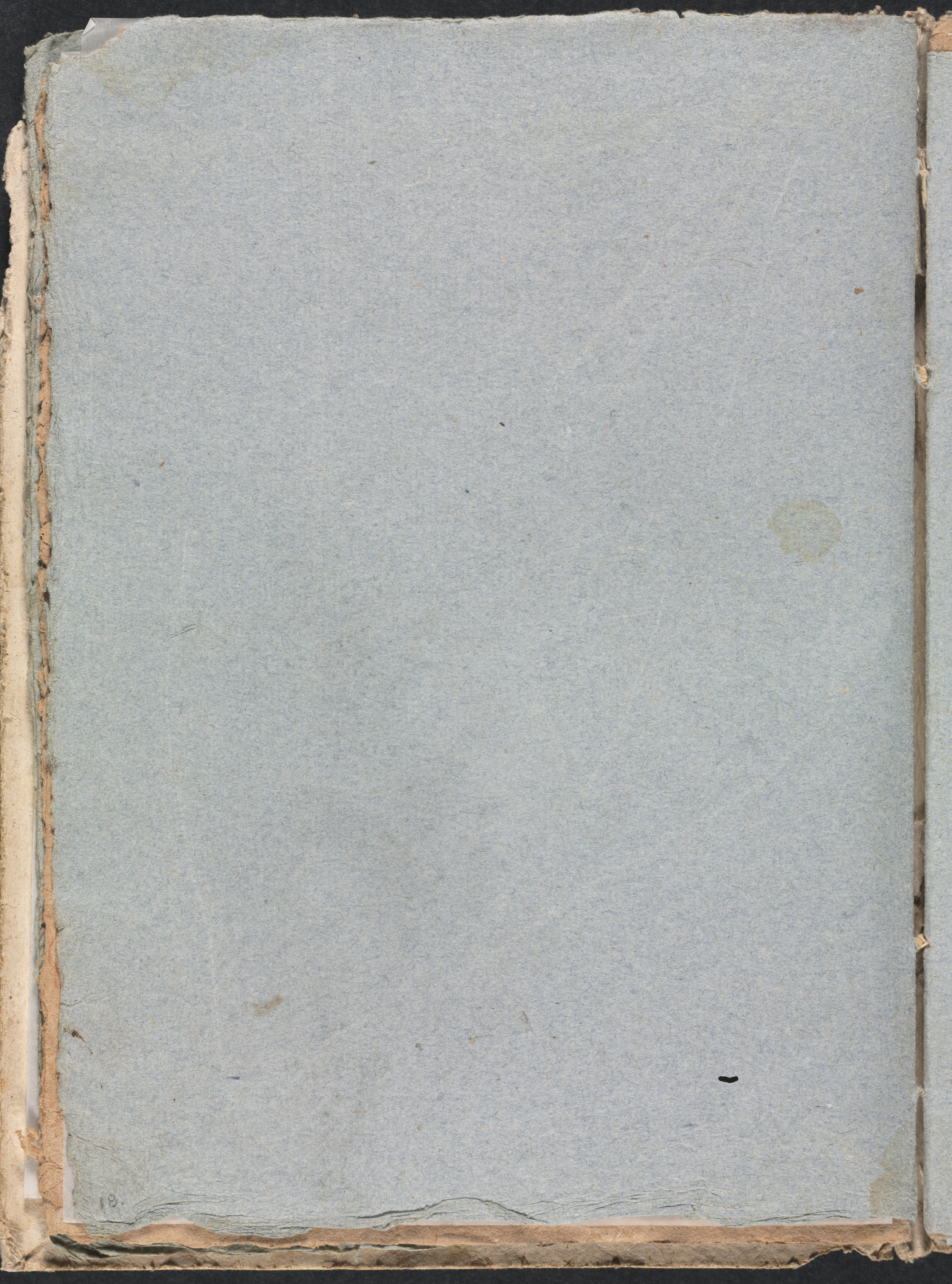 Verona Sketchbook: (page 18) by Francesco Lorenzi. Gray page with worn edges, small dark spots scattered throughout, a light-brown stain on the right side, and a small, faint numeral "18" in the bottom-left corner.