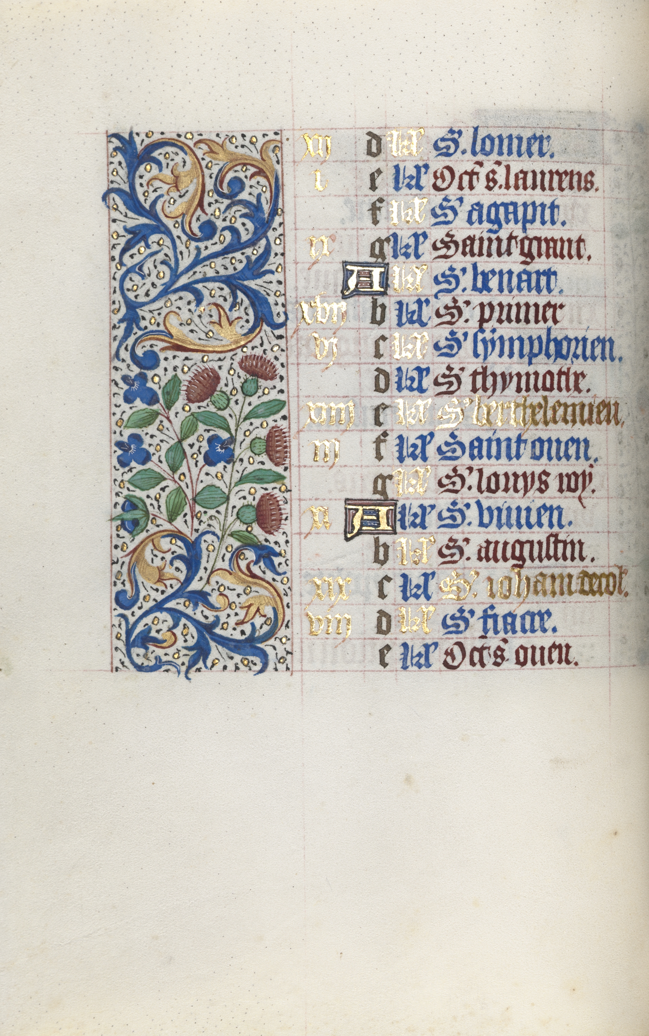Book of Hours (Use of Rouen): fol. 8r, Calendar Page for August