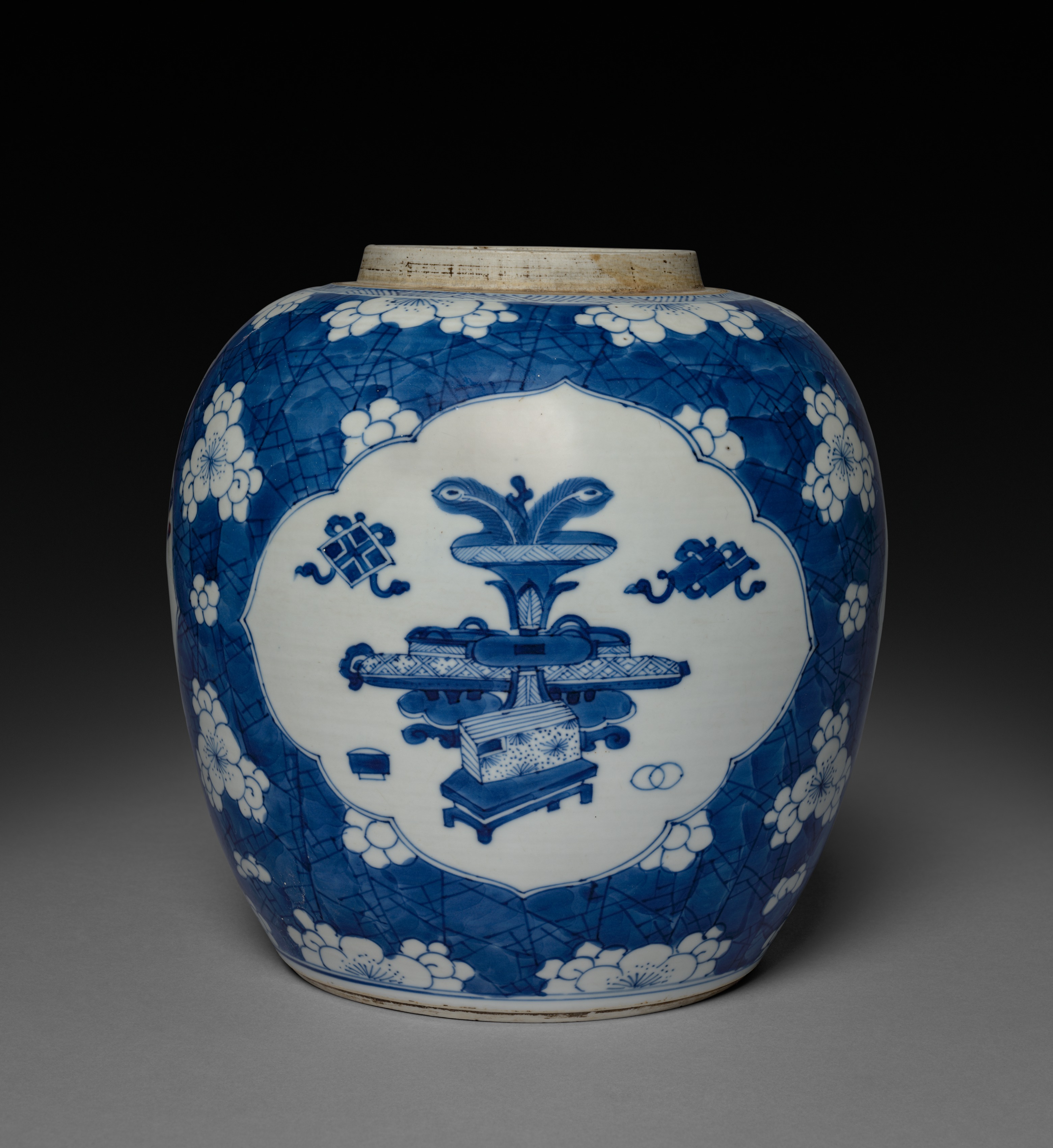 Covered Jar with Chrysanthemums, Peonies, and Plum